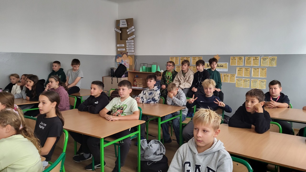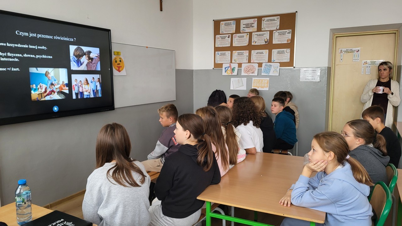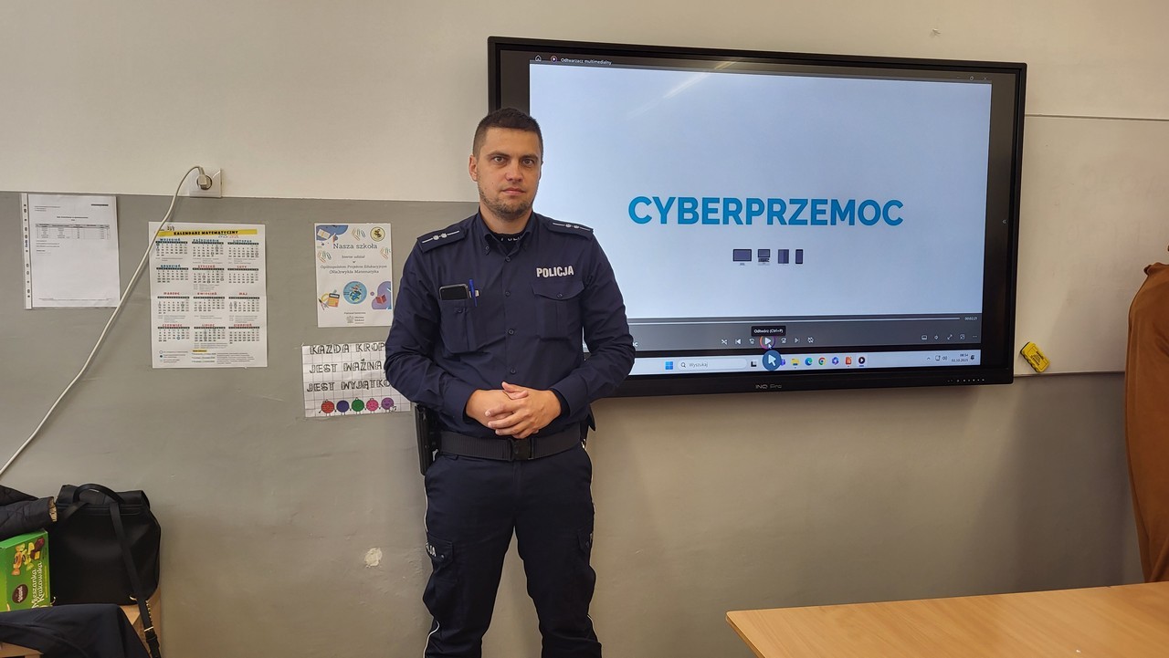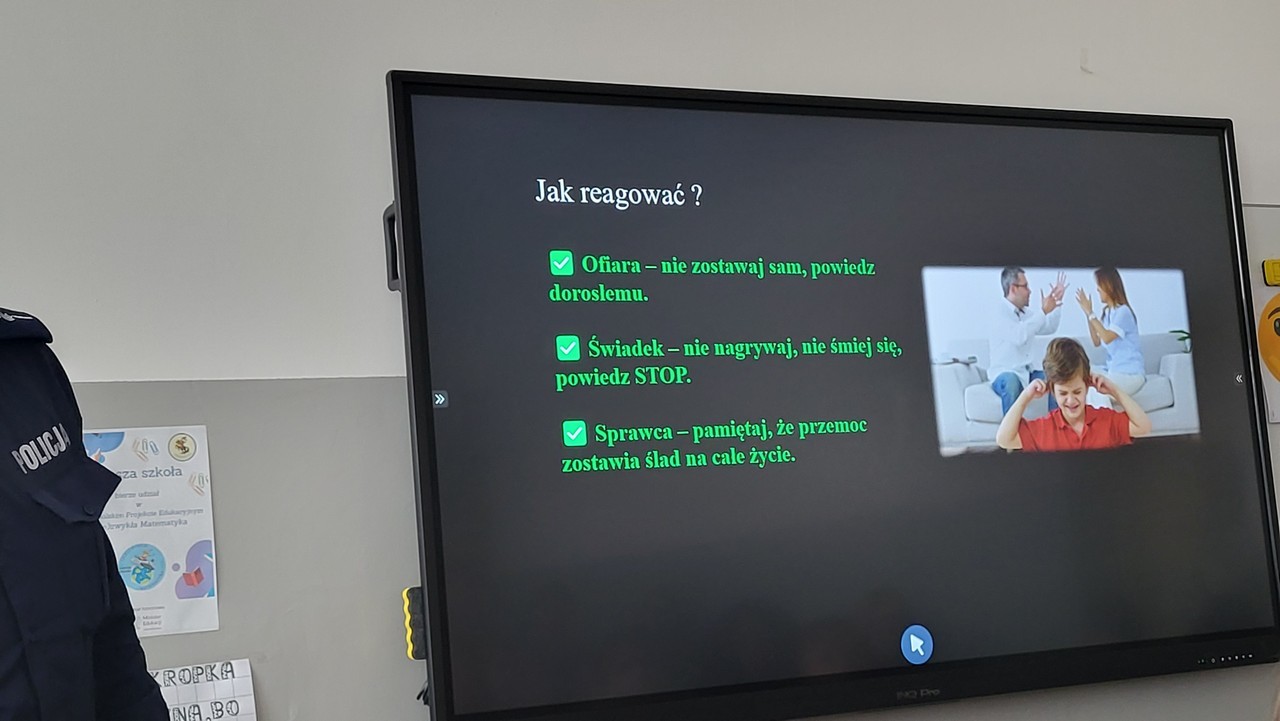 Wizyta policjanta była ważnym elementem działań profilaktycznych w naszej szkole, w której dbamy o dobry klimat, nie pozwalamy na krzywdę, a w razie trudności – wspólnie ustalamy kroki naprawcze.