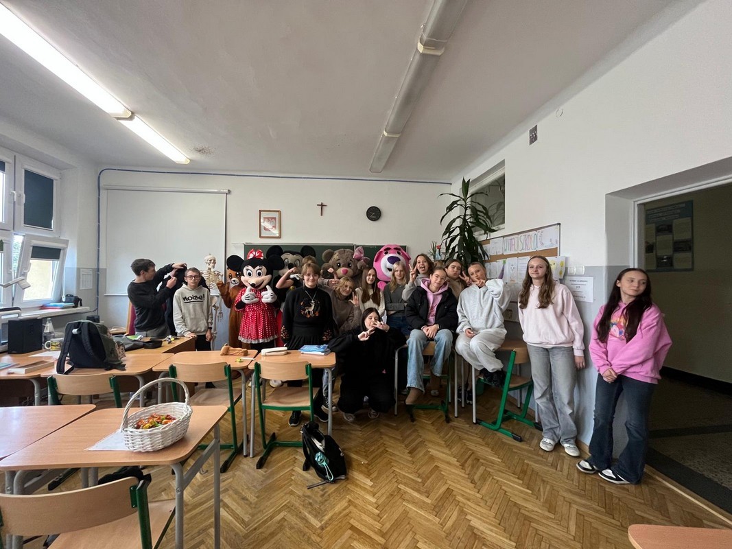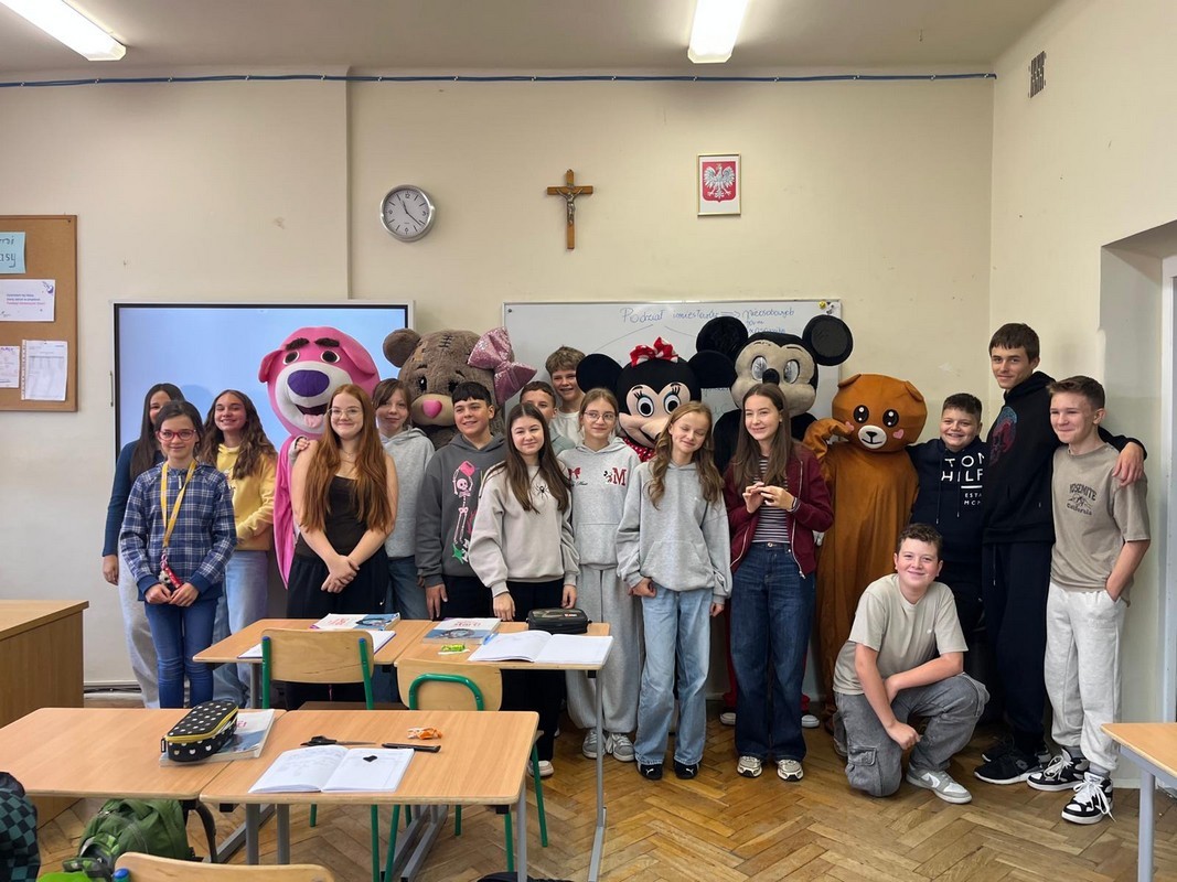 W Tygodniu Przeciwdziałania Przemocy Rówieśniczej, w czwartek 2.10. klasa 8e zaprosiła całą szkołę do wspólnego przeżywania Dnia Życzliwości. W tym dniu uczniowie klasy 8e zorganizowali dla wszystkich miłą niespodziankę: wizytę niezwykłych gości, do których można się było przytulać i przybijać piątki. Były też drobne, słodkie upominki 🙂 Samorząd przygotował krótką audycję, podczas której przewodnicząca szkoły Natalia Hudaszek z 8e wraz ze swoimi zastępczyniami – Amelią Wojtan z 8b i Wiktorią Kozak z 8a odczytały list Ministra Edukacji skierowany do dzieci i młodzieży.
