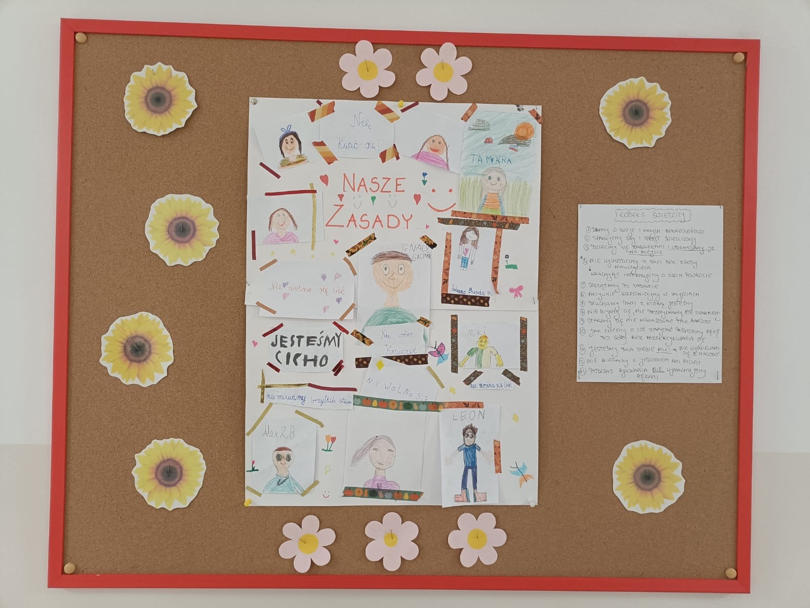 Radośnie dzieliliśmy się naszymi wspomnieniami z wakacji oraz rozmawialiśmy o ciekawych doświadczeniach podczas czasu wolnego nawiązując tym samym do omówienia bezpieczeństwa ruchu drogowego, poruszania się po szkole oraz poza nią.