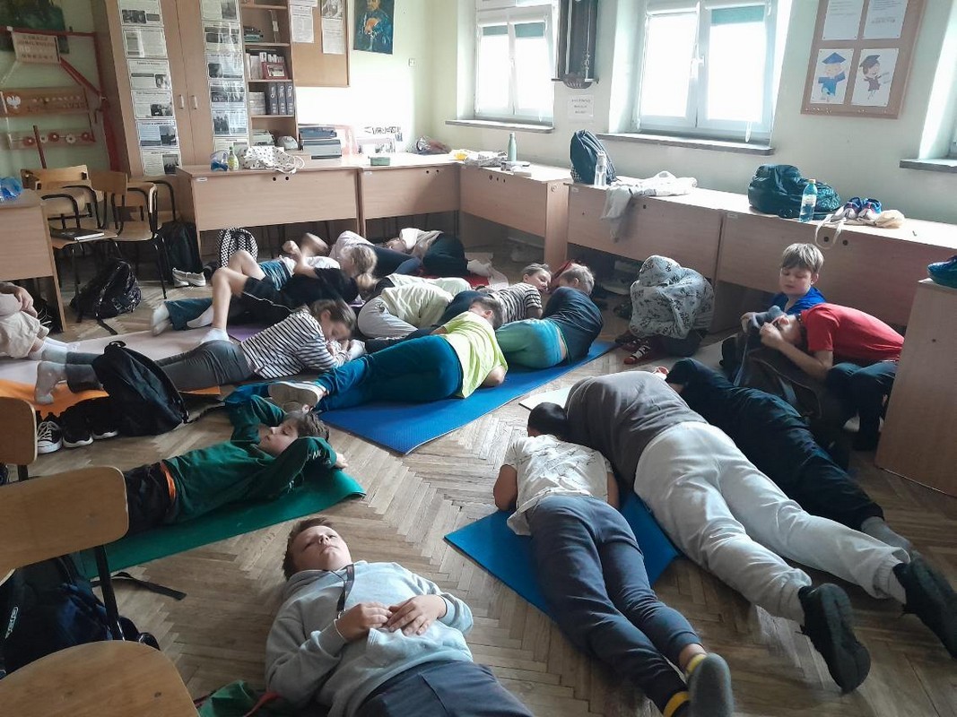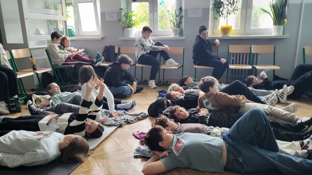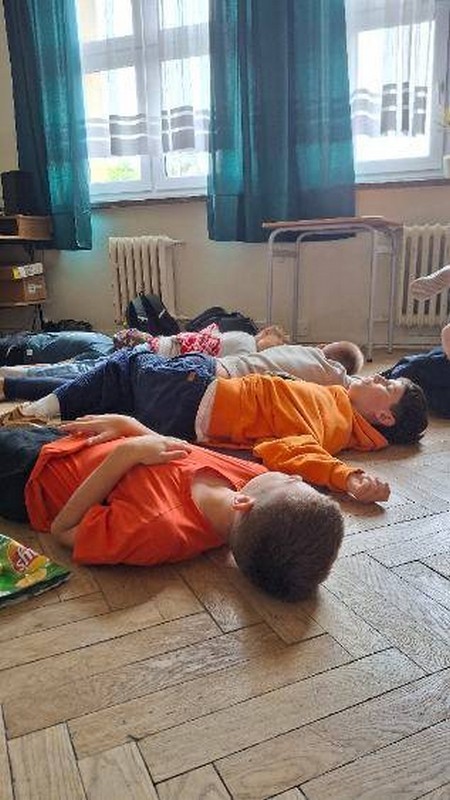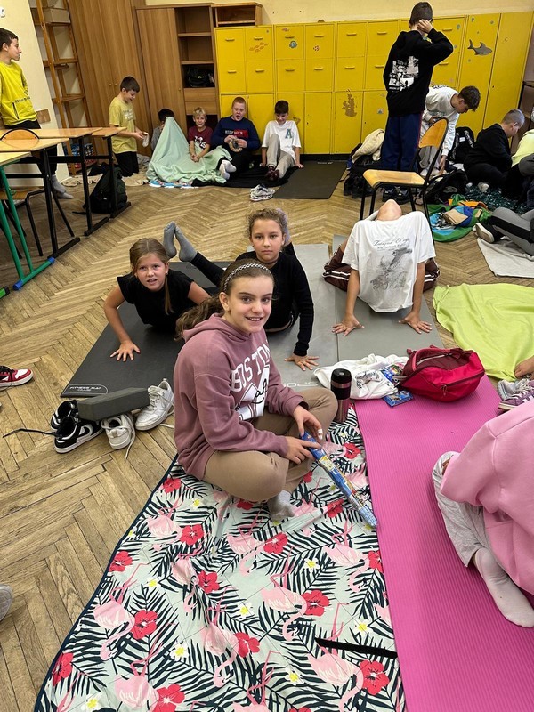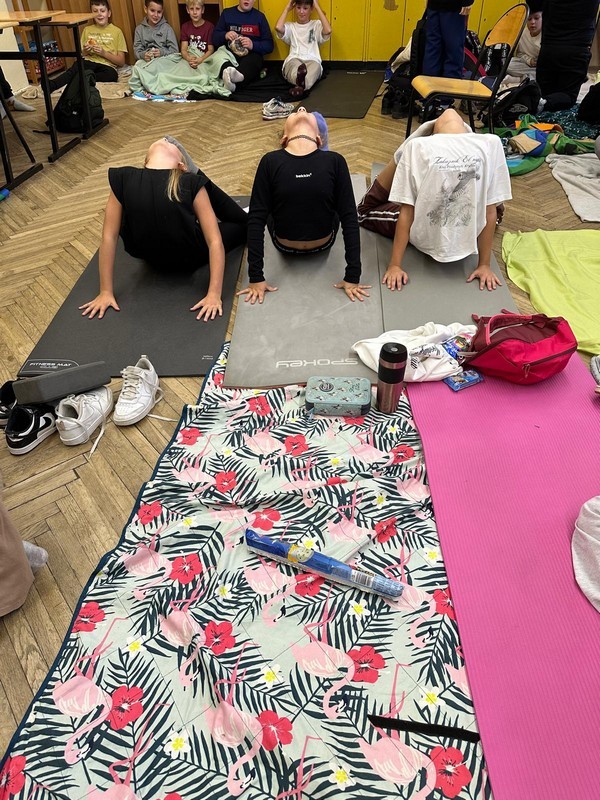 Dużo radości sprawiły dzieciom zajęcia ruchowe, podczas których przekonały się, jak istotna jest aktywność fizyczna dla dobrego samopoczucia. Uczestnicy poznali także techniki oddechowe i ćwiczenia relaksacyjne, które mogą wykorzystywać na co dzień, by zadbać o wewnętrzną równowagę i spokój. A w czasie tych chwil poświęconych na wyciszający relaks doskonale przydały się im przyniesione z domów maty, kocyki i poduszki.