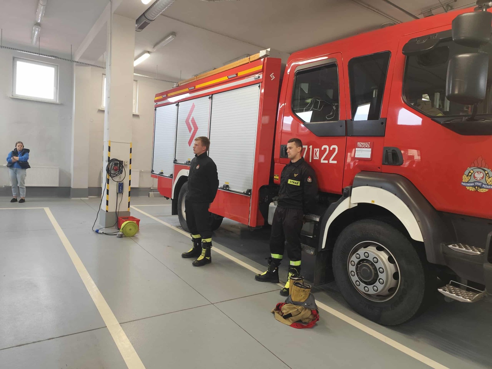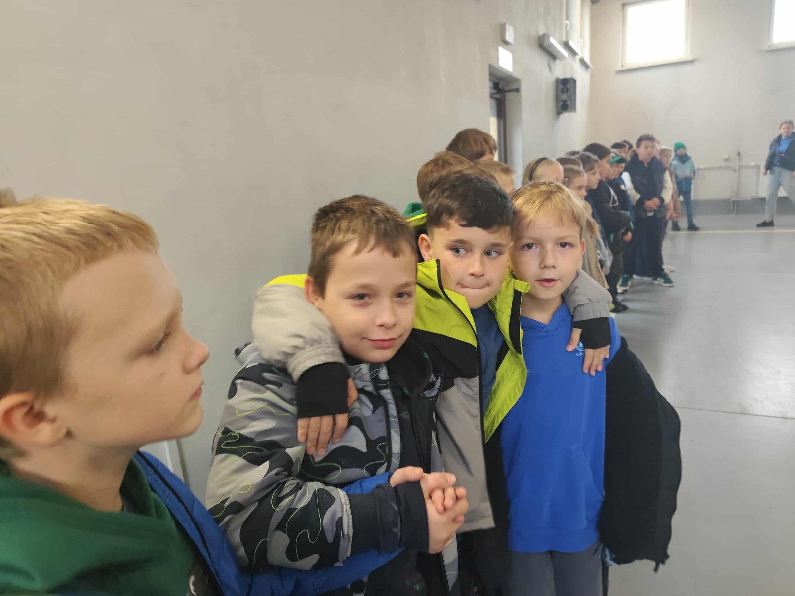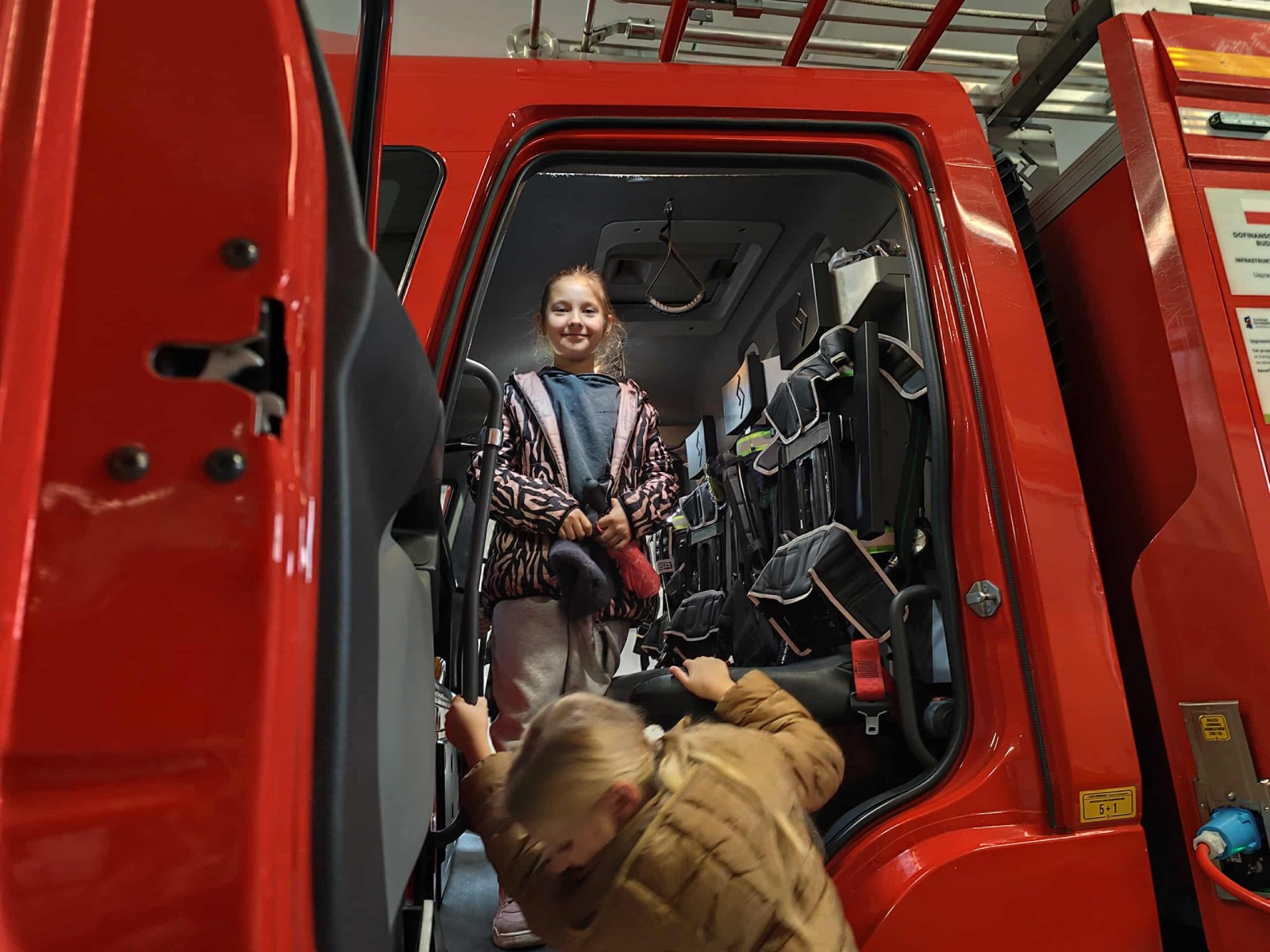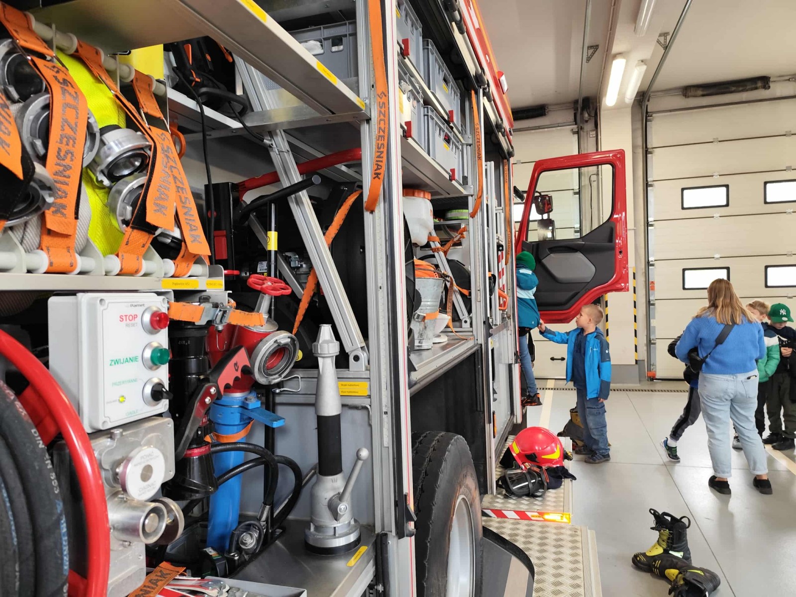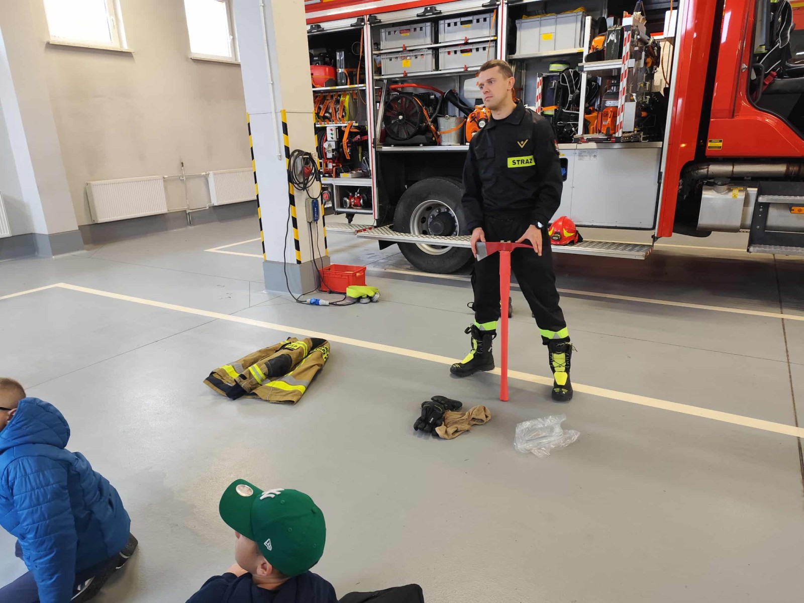 Dużym zainteresowaniem cieszył się także pokaz zjazdu po strażackiej rurze, który wzbudził prawdziwy zachwyt wśród uczniów. Dzięki wizycie dzieci dowiedziały się, jak odpowiedzialna i wymagająca jest praca strażaka, a także jak ważne jest przestrzeganie zasad bezpieczeństwa w codziennym życiu. Spotkanie zakończyło się wspólnym zdjęciem i gromkimi brawami dla naszych lokalnych bohaterów.
