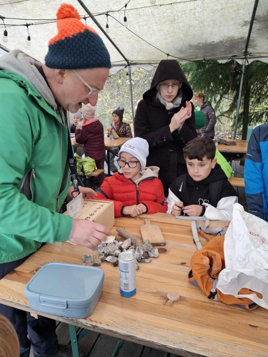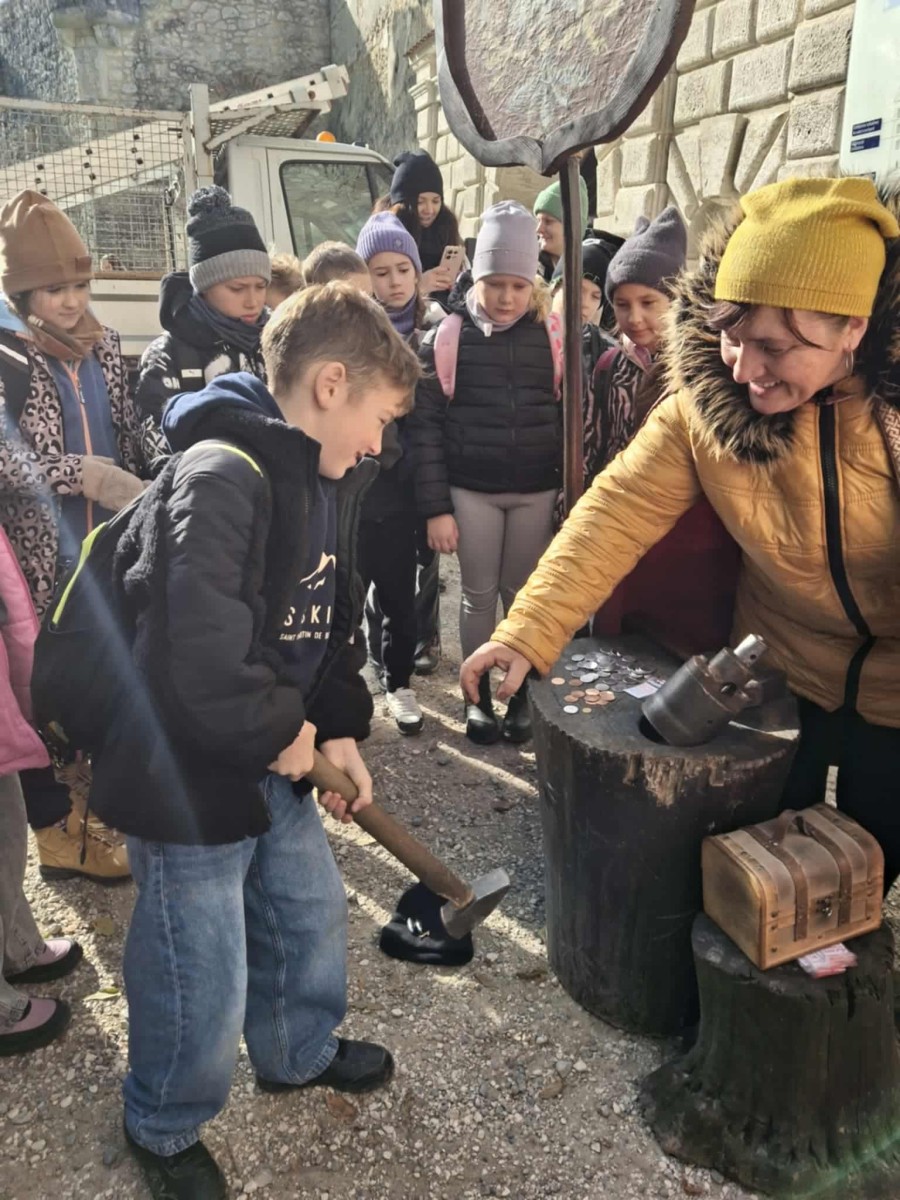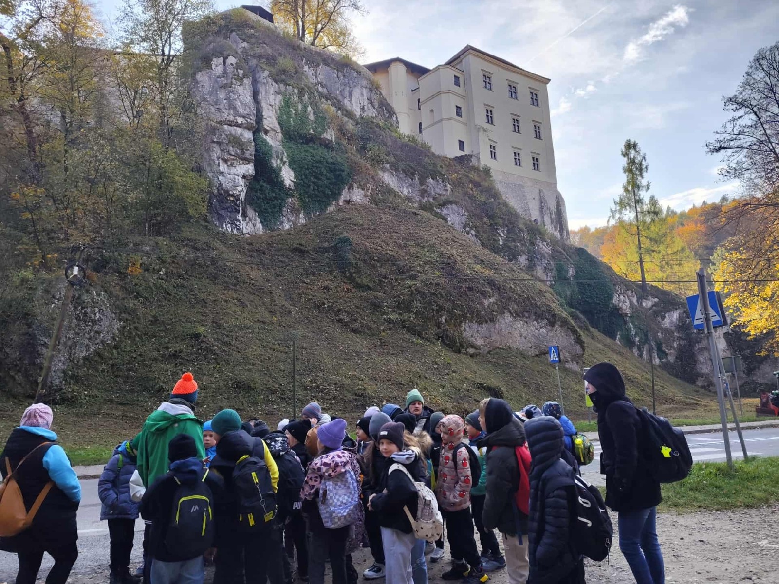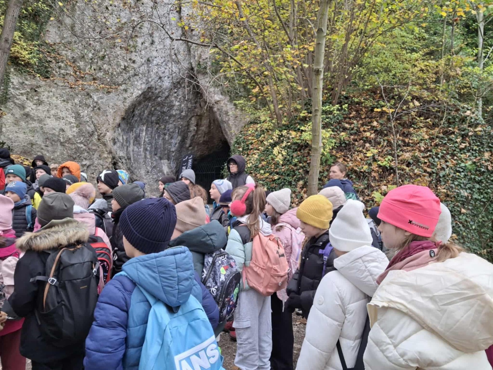 Pierwszym punktem programu była Jaskinia Nietoperzowa, położona niedaleko Jerzmanowic. Przewodnik opowiedział dzieciom o historii jaskini i o tym, że dawno temu mieszkali tam ludzie pierwotni i prehistoryczne zwierzęta. Uczniowie dowiedzieli się także, że jaskinia wzięła swoją nazwę od licznych nietoperzy, które mają tam swoje zimowe schronienie. W środku panował chłód, ale mogliśmy podziwiać piękne formacje skalne – stalaktyty i stalagmity. Niektórzy po raz pierwszy widzieli taką jaskinię, więc było to dla nich bardzo ekscytujące przeżycie.