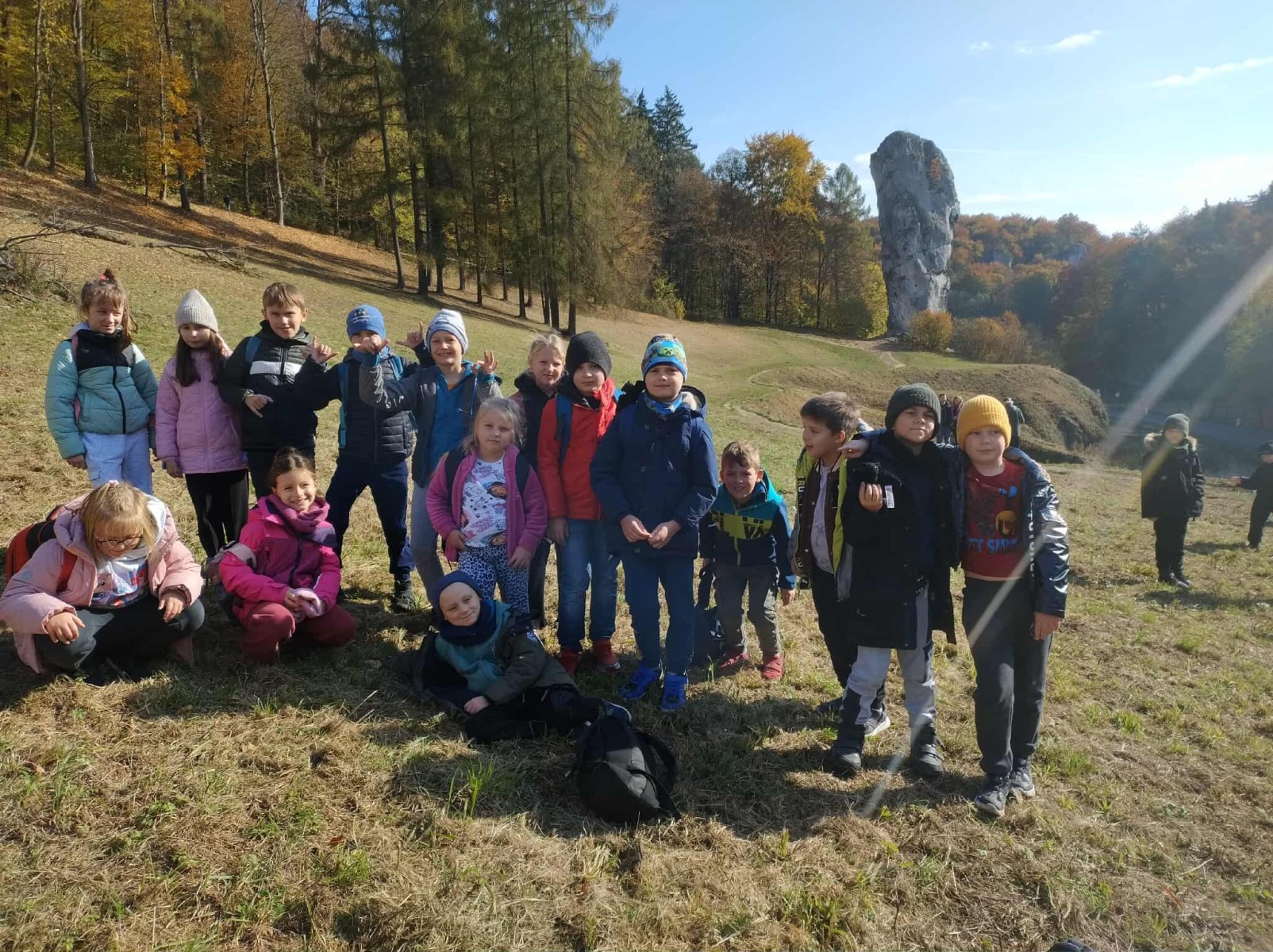 W pobliżu zamku podziwialiśmy słynną Maczugę Herkulesa – skałę o niezwykłym kształcie, która jest symbolem Ojcowskiego Parku Narodowego. Potem pojechaliśmy do Ojcowa, by zobaczyć ruiny zamku i wysłuchać jego historii. Podczas spaceru doliną Prądnika podziwialiśmy malownicze krajobrazy wapiennych skał, przeszliśmy Bramą Krakowską, mijaliśmy małe urokliwe wodospady i źródełka. W czasie wycieczki uczniowie zrobili sobie pamiątkowe zdjęcia i kupili drobne pamiątki. W drodze powrotnej wszyscy wesoło rozmawiali i wspominali najciekawsze momenty dnia. Wszyscy byli zmęczeni, ale zgodni, że wycieczka była udana. Dzieci dowiedziały się wielu ciekawych informacji o przyrodzie i historii tego małego, ale jakże pięknego Parku, a także miło spędziły czas w towarzystwie kolegów i koleżanek.