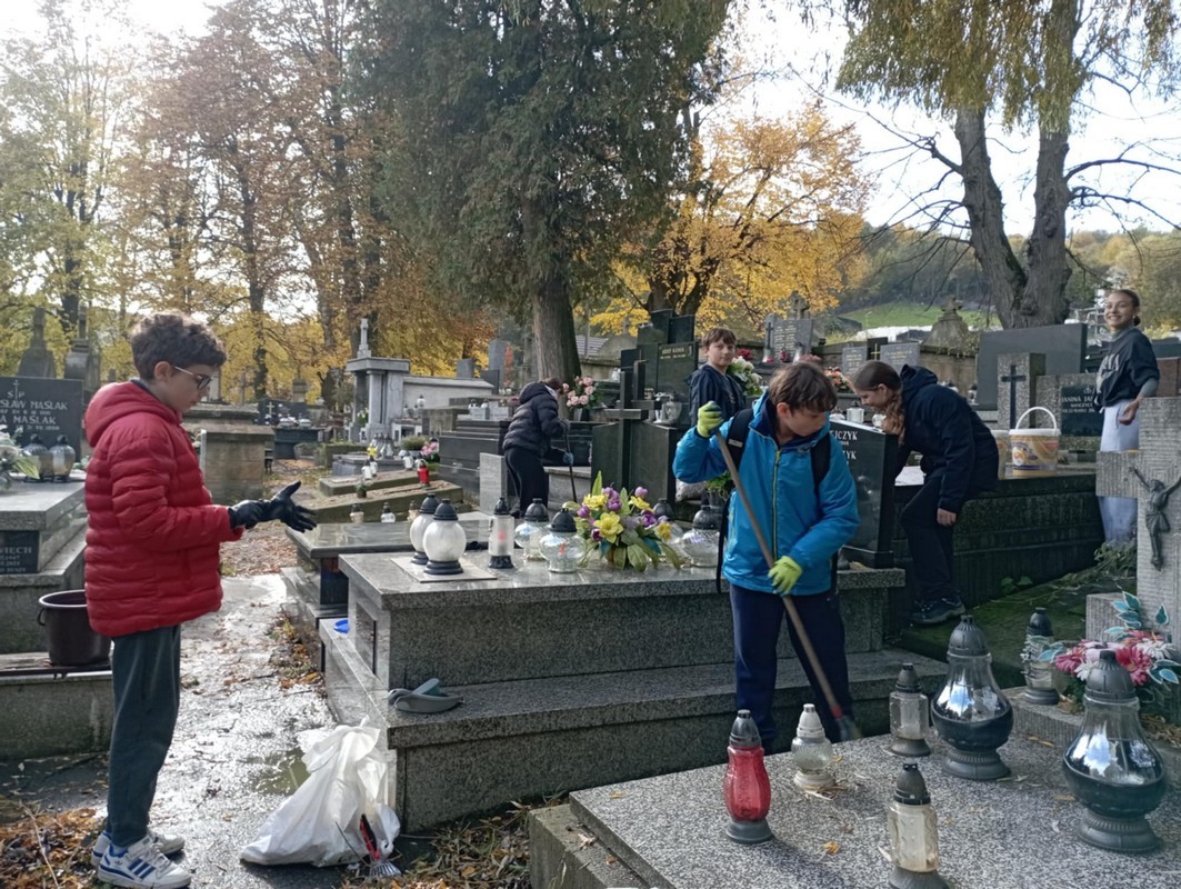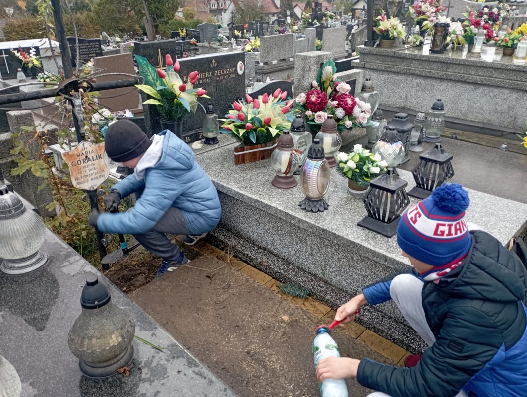 Kolejny raz wzruszająca inicjatywa zjednoczyła pokolenia w naszej społeczności. Uczniowie klasy 8b postanowili pomóc starszym mieszkańcom w przygotowaniu grobów ich bliskich na nadchodzące Święto Wszystkich Świętych.