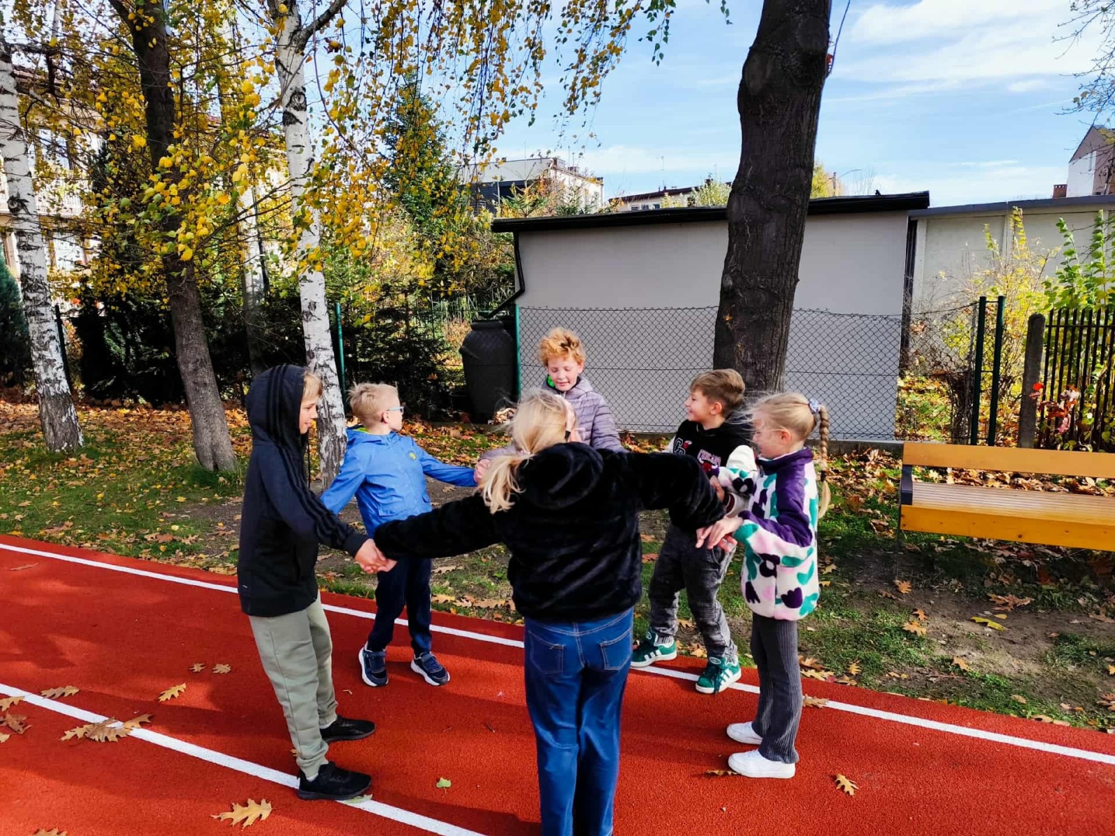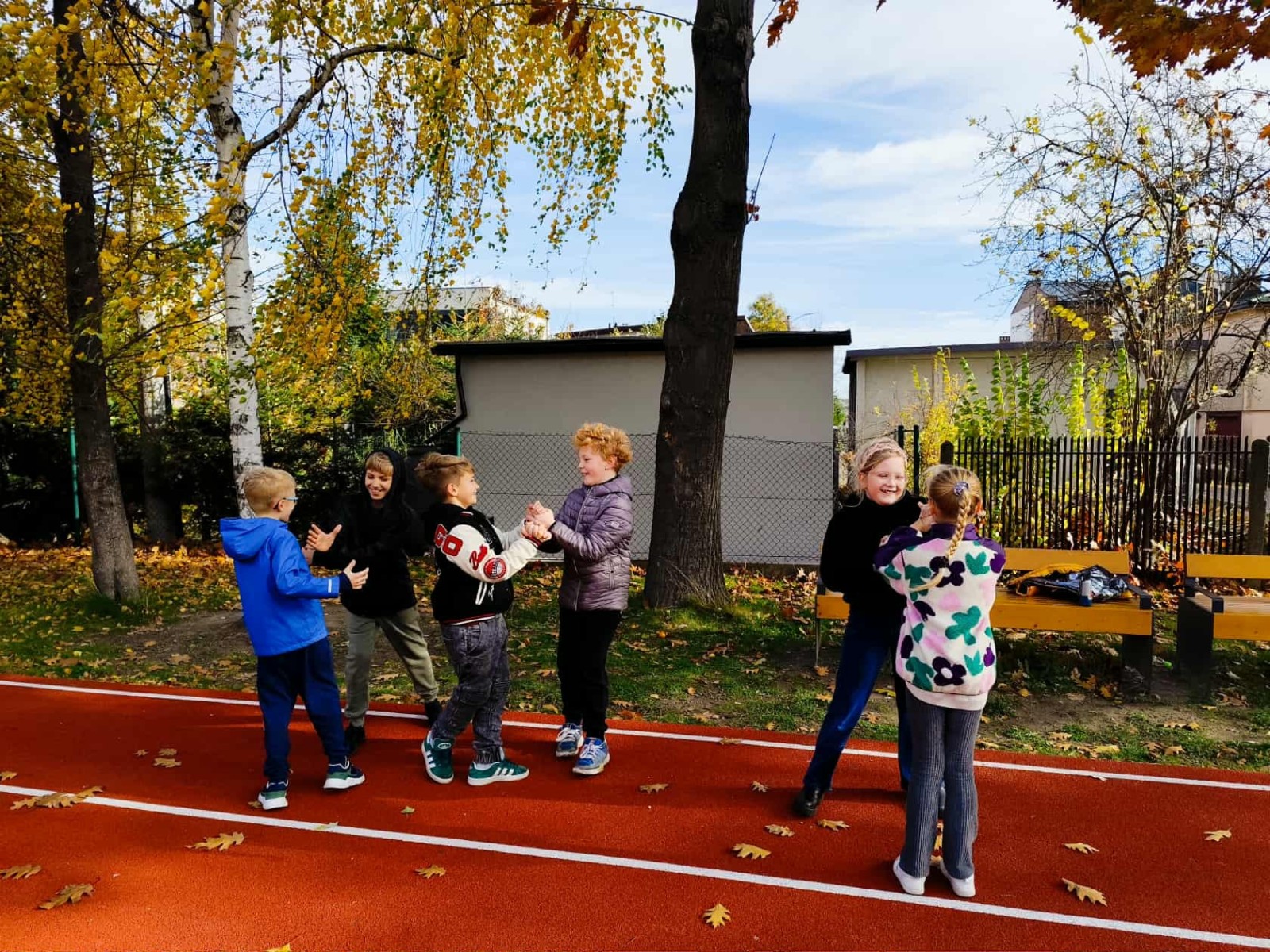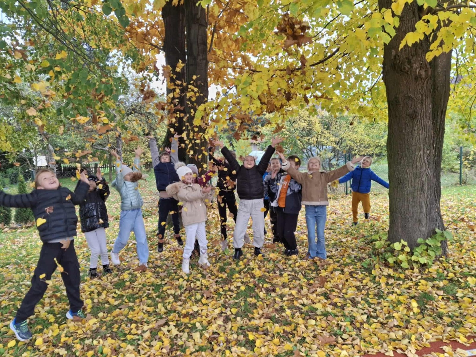 Jesienny taniec na świeżym powietrzu – „Wyginam śmiało ciało” – uczniowie z ogromnym entuzjazmem układali własne choreografie, łącząc ruch, muzykę i dobrą zabawę. Wspólne tańczenie na świeżym powietrzu dostarczyło wszystkim mnóstwo radości i pozytywnej energii!