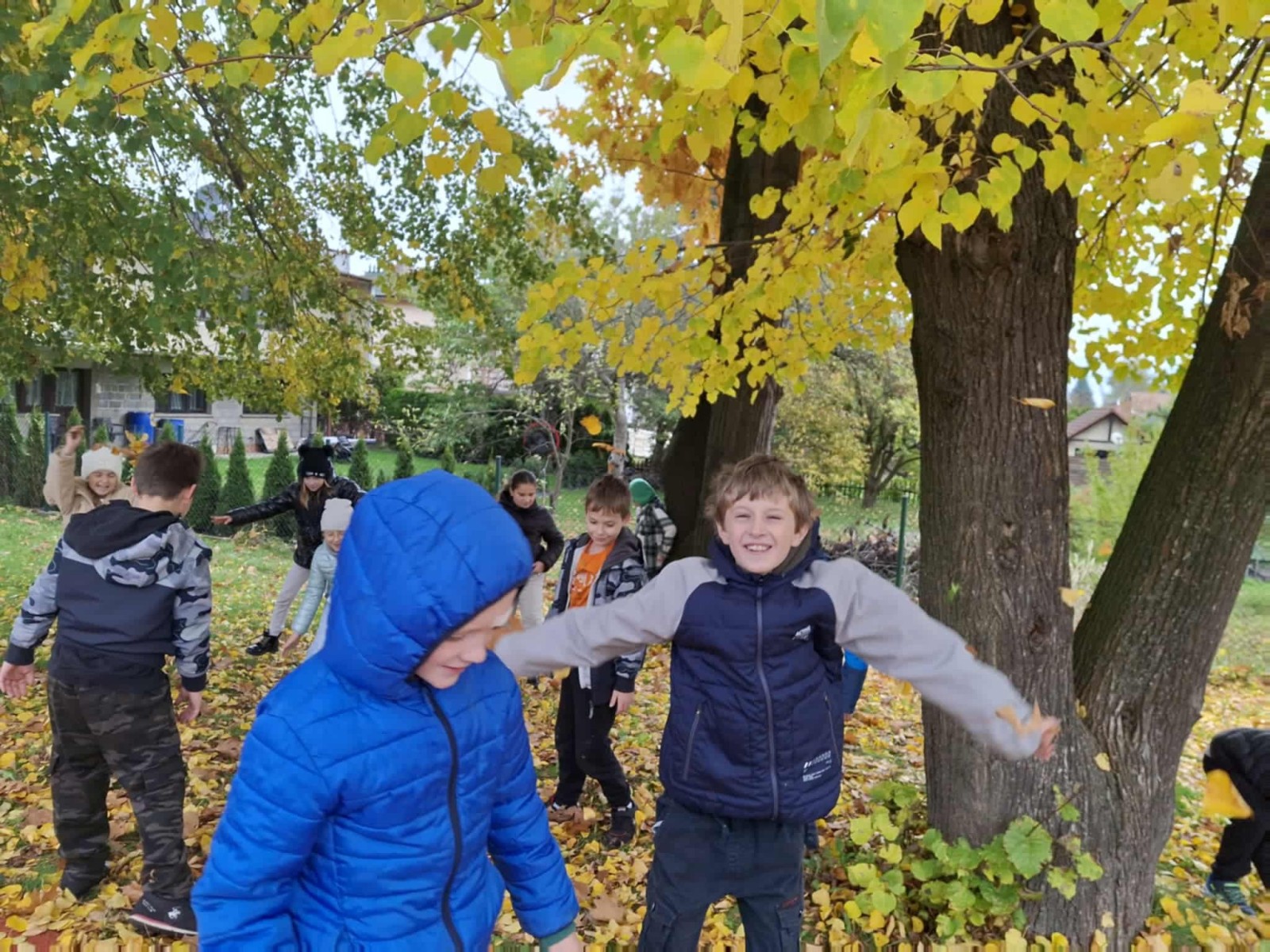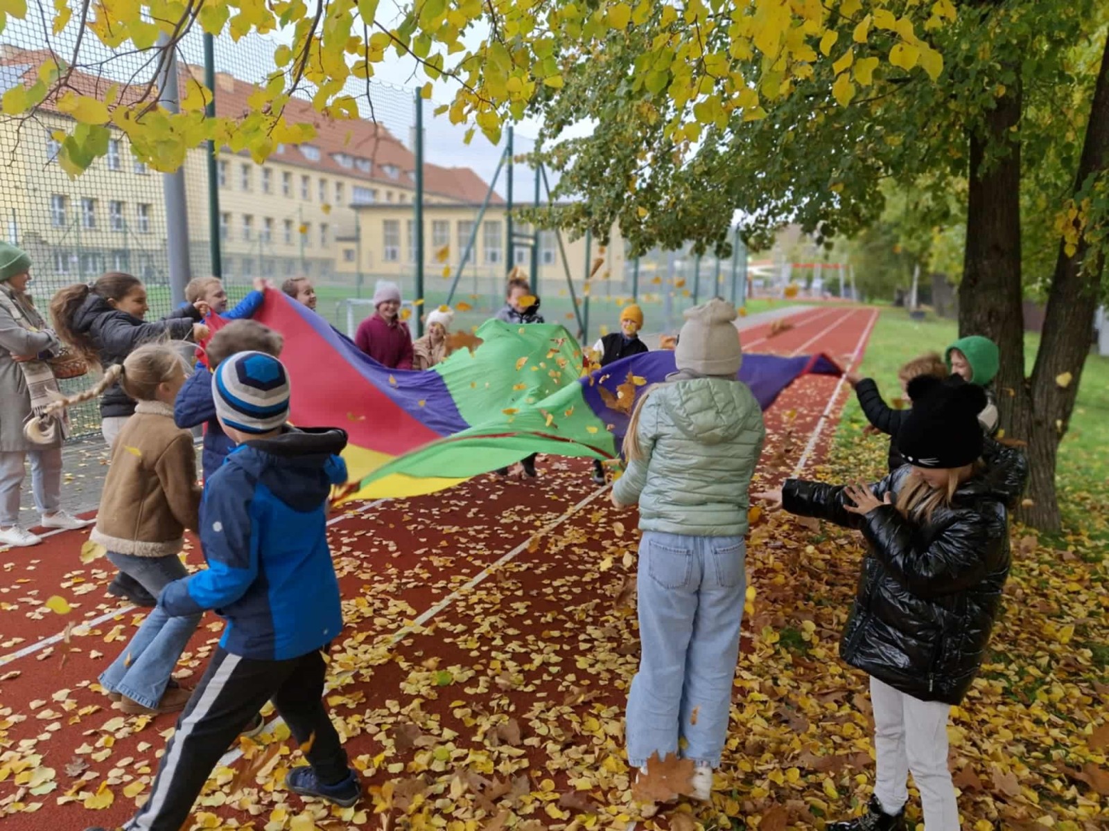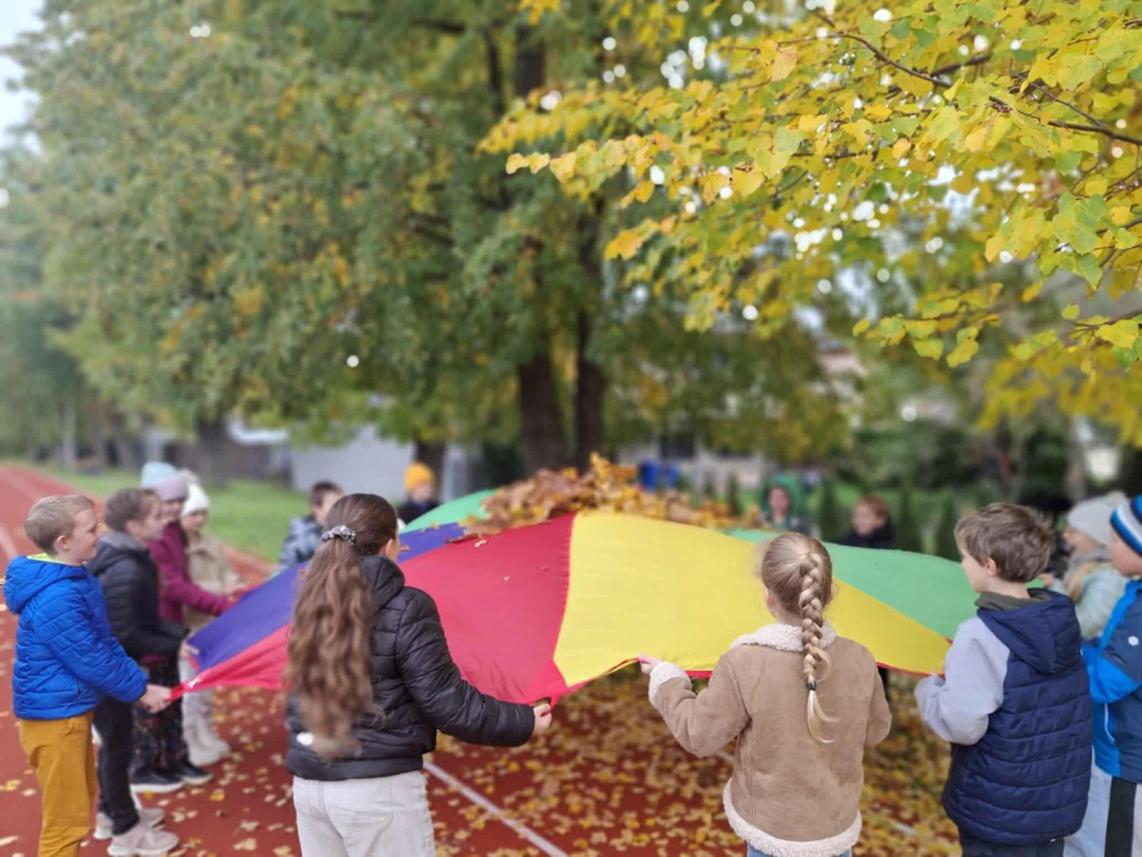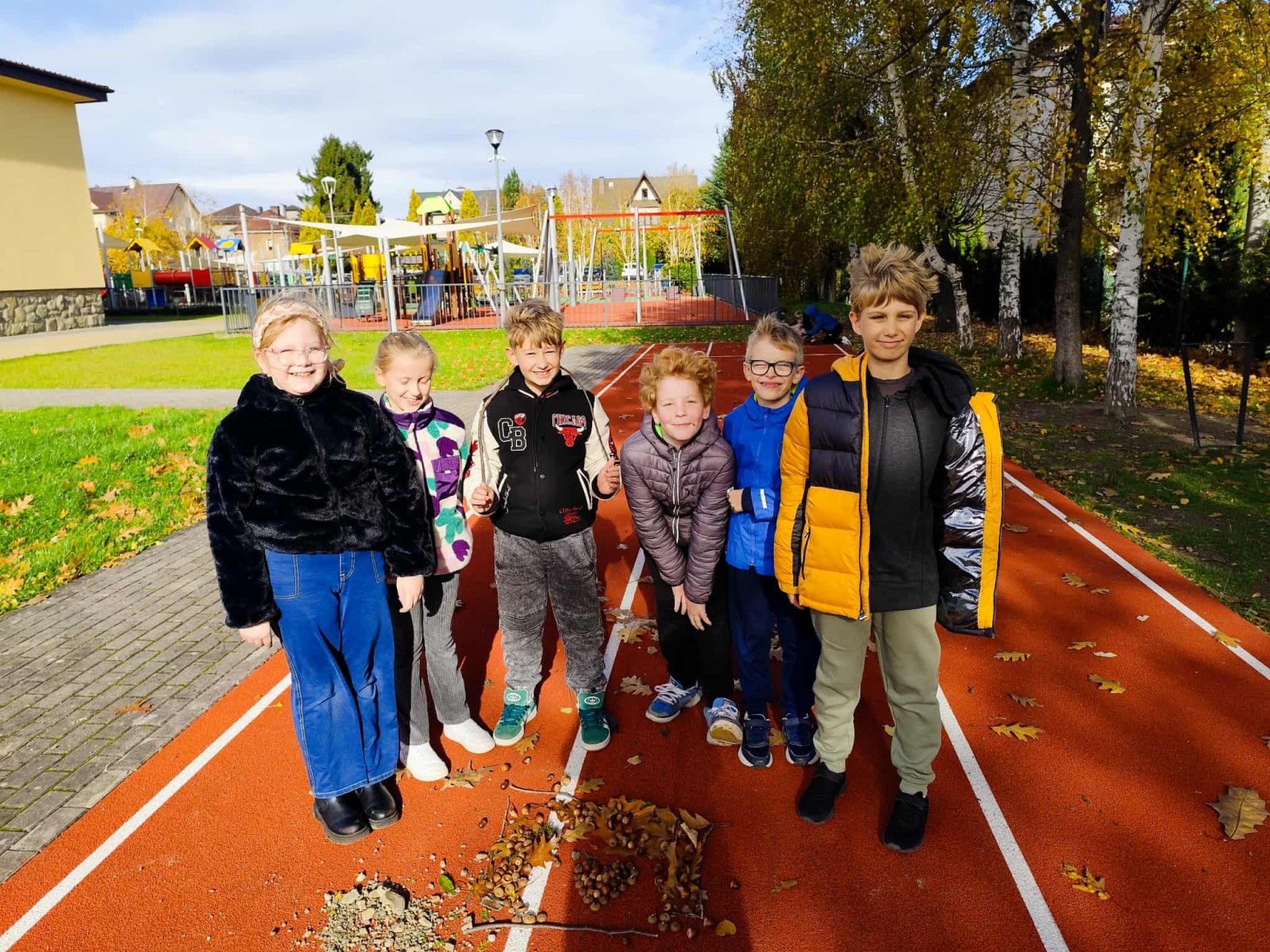 Jesienny taniec na świeżym powietrzu – „Wyginam śmiało ciało” – uczniowie z ogromnym entuzjazmem układali własne choreografie, łącząc ruch, muzykę i dobrą zabawę. Wspólne tańczenie na świeżym powietrzu dostarczyło wszystkim mnóstwo radości i pozytywnej energii!