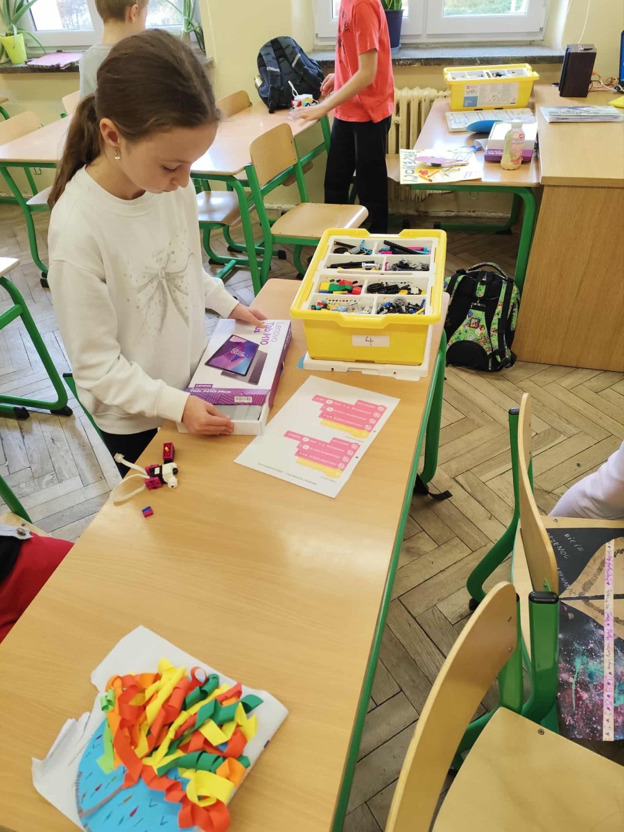 Uczniowie klasy III D rozpoczęli realizację innowacji pedagogicznej „W świecie robotów i programowania”. Jej celem jest rozwijanie myślenia logicznego, kreatywności oraz umiejętności pracy zespołowej. Uczniowie uczą się projektowania, konstruowania i programowania robotów, wykorzystując język programowania oparty na Scratch. Pracują z wykorzystaniem zestawów LEGO SPIKE PRIME oraz tabletów z oprogramowaniem. Dzięki połączeniu nauki z zabawą młodzi konstruktorzy rozwijają swoje zdolności manualne, wyobraźnię przestrzenną, cierpliwość i dokładność.