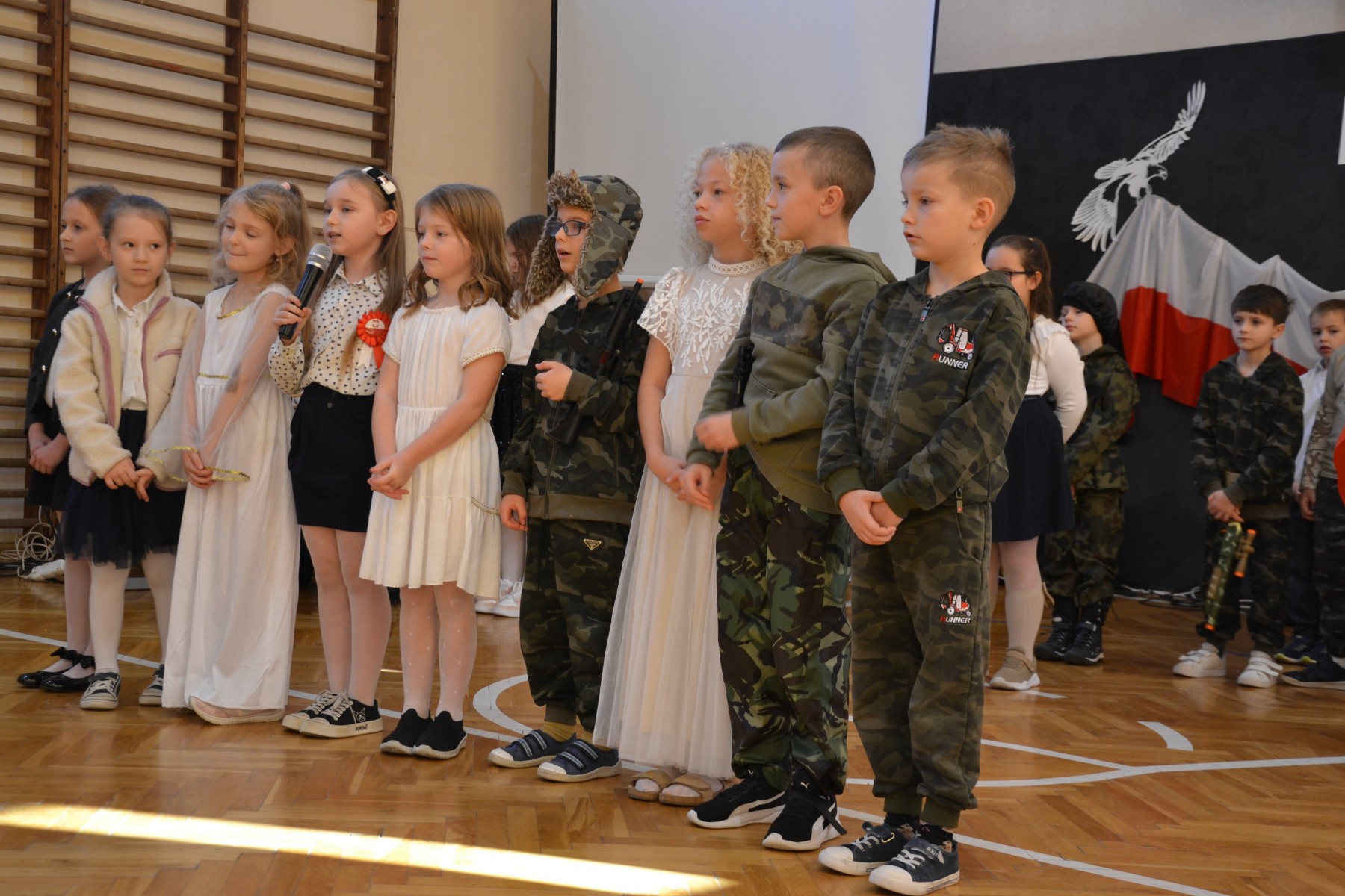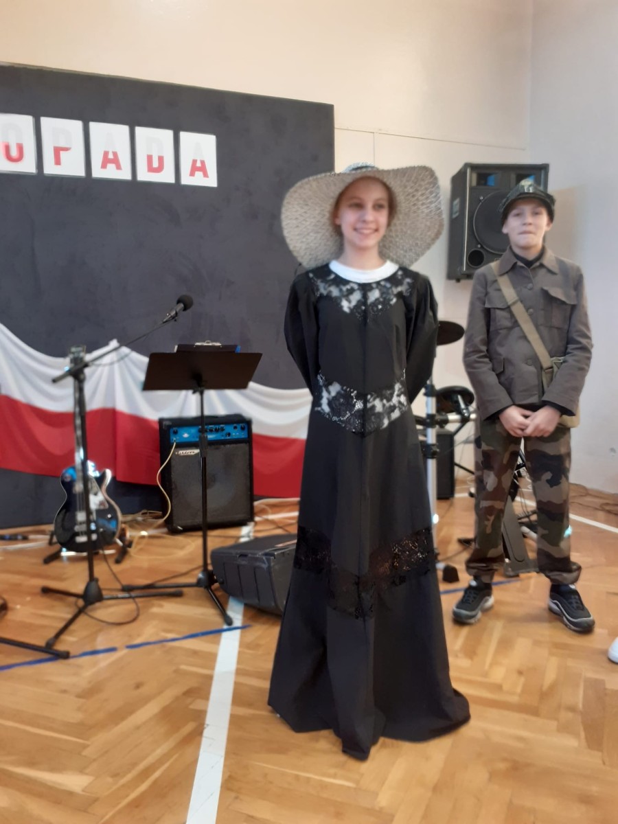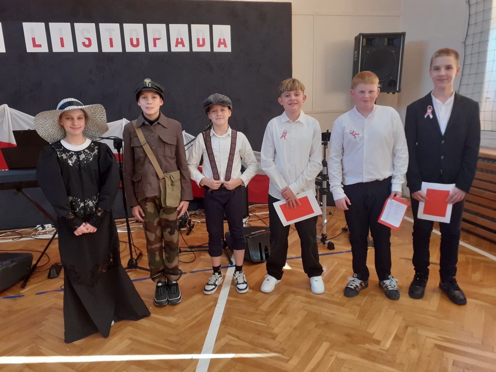 Uroczystości towarzyszył szkolny zespół muzyczny pod kierownictwem pana Piotra Gablankowskiego. Przekazywane treści, przeplatane pięknie zaprezentowanymi pieśniami patriotycznymi i rokowym wykonaniem piosenki pt. „Kocham wolność”, pozwoliły głębiej przeżyć wydarzenia, które miały miejsce w 1918 roku.