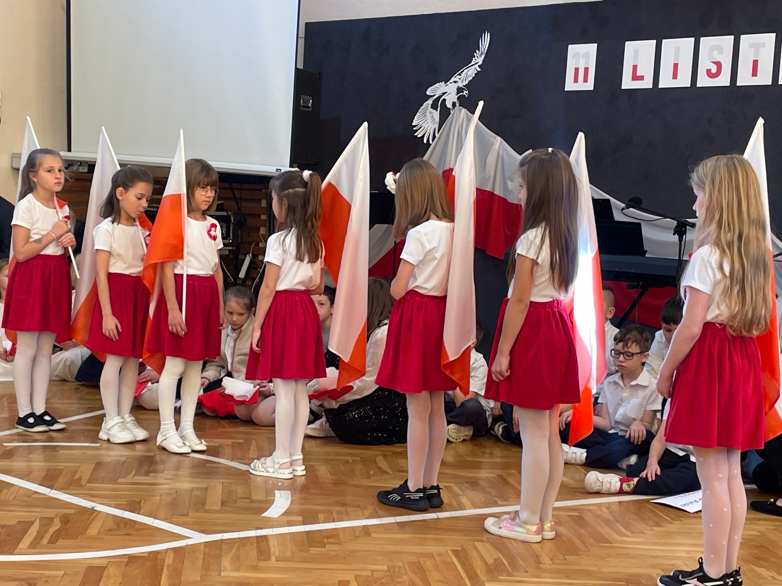 Hymn państwowy, „Mazurek Dąbrowskiego”, został odśpiewany w tym dniu dwukrotnie: przez całą społeczność szkolną na początku każdej akademii oraz we wszystkich klasach, o wyznaczonej godzinie w ramach ogólnopolskiej akcji „Szkoła do Hymnu”, do której „Dwójka” przystąpiła po raz kolejny.