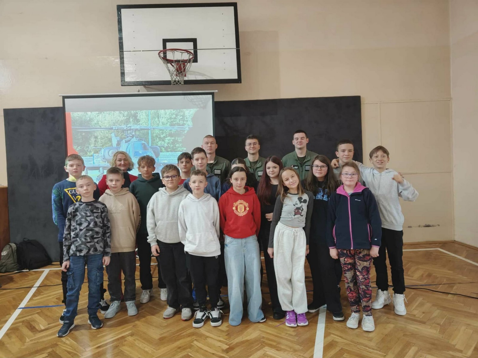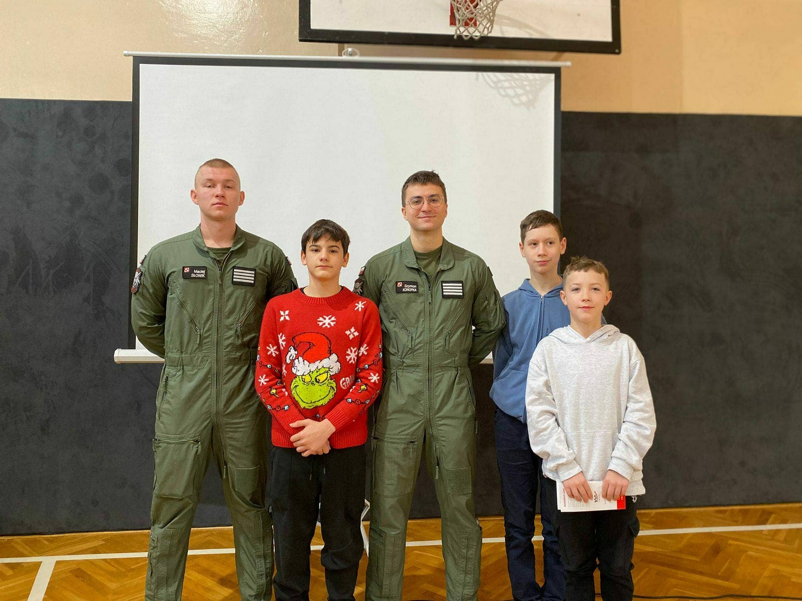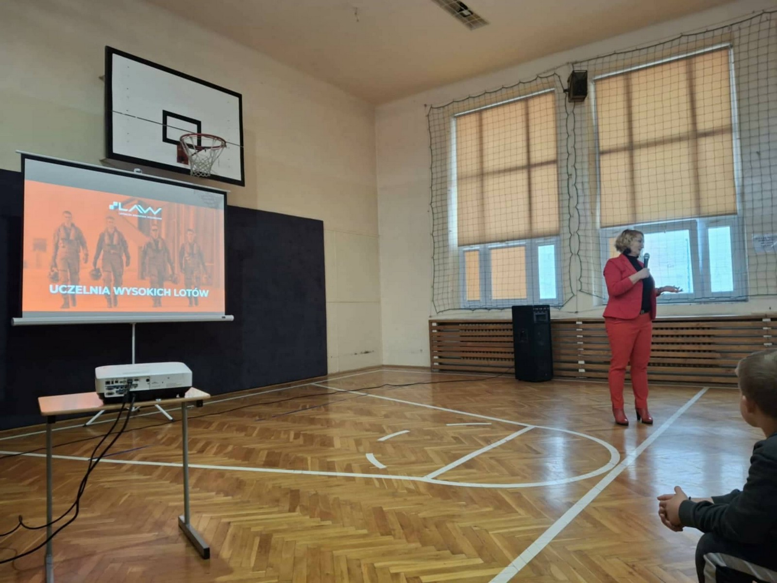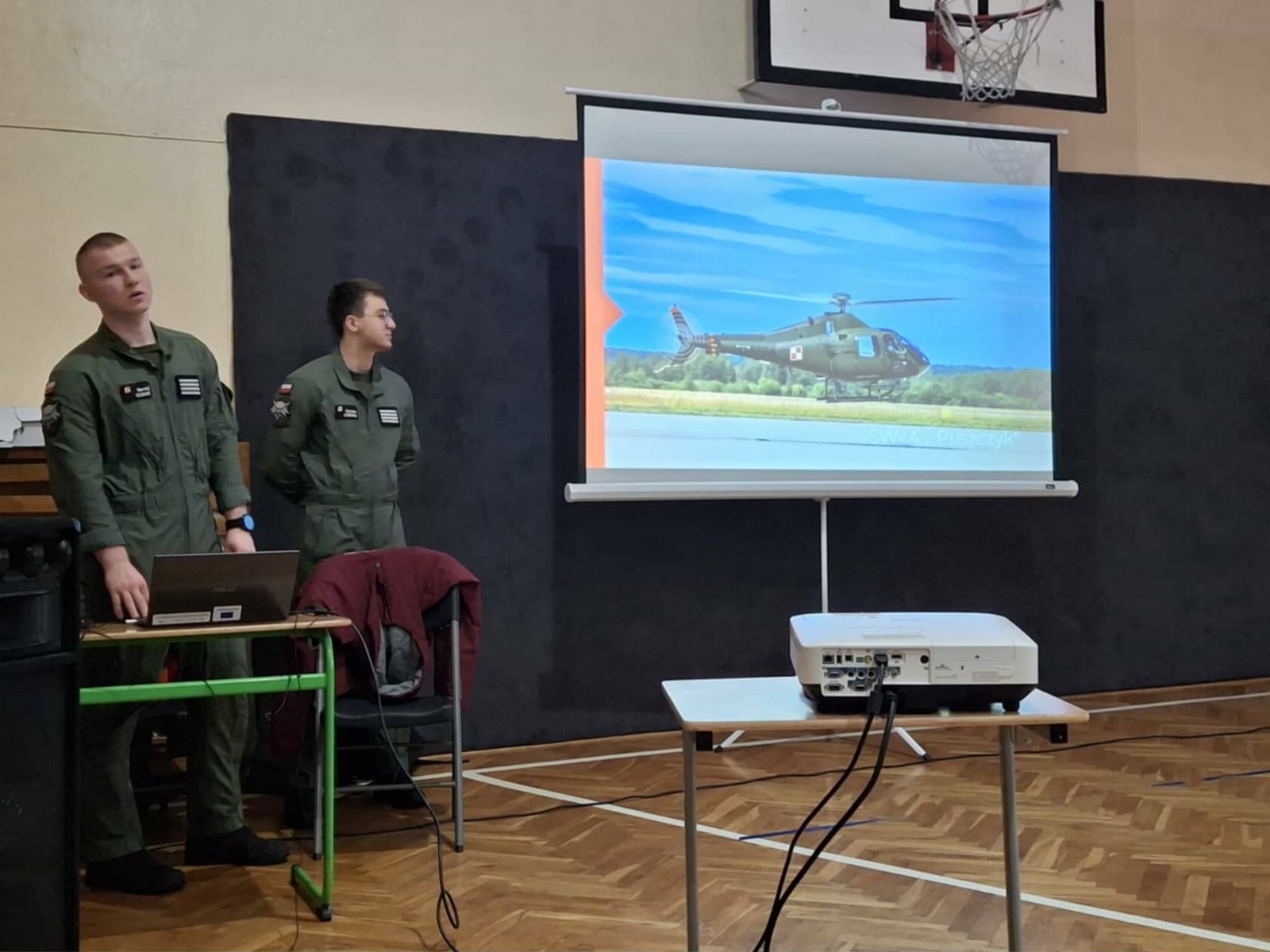 Trzech podchorążych przybliżyło uczniom tajniki swojej ścieżki edukacyjnej oraz realia służby w Siłach Powietrznych. Opowiedzieli o swojej codzienności, wymaganiach związanych z nauką w „Szkole Orląt” oraz o etapach przygotowania do zawodu pilota. Obalili wiele mitów dotyczących rekrutacji, treningu lotniczego oraz samej pracy w wojsku. Podkreślali, jak ważny jest świadomy wybór ścieżki zawodowej, odpowiedzialność i pasja do lotnictwa. Uczniowie mogli również poznać prestiż i rangę zawodu pilota wojskowego oraz możliwości rozwoju zawodowego, jakie daje służba w lotnictwie.