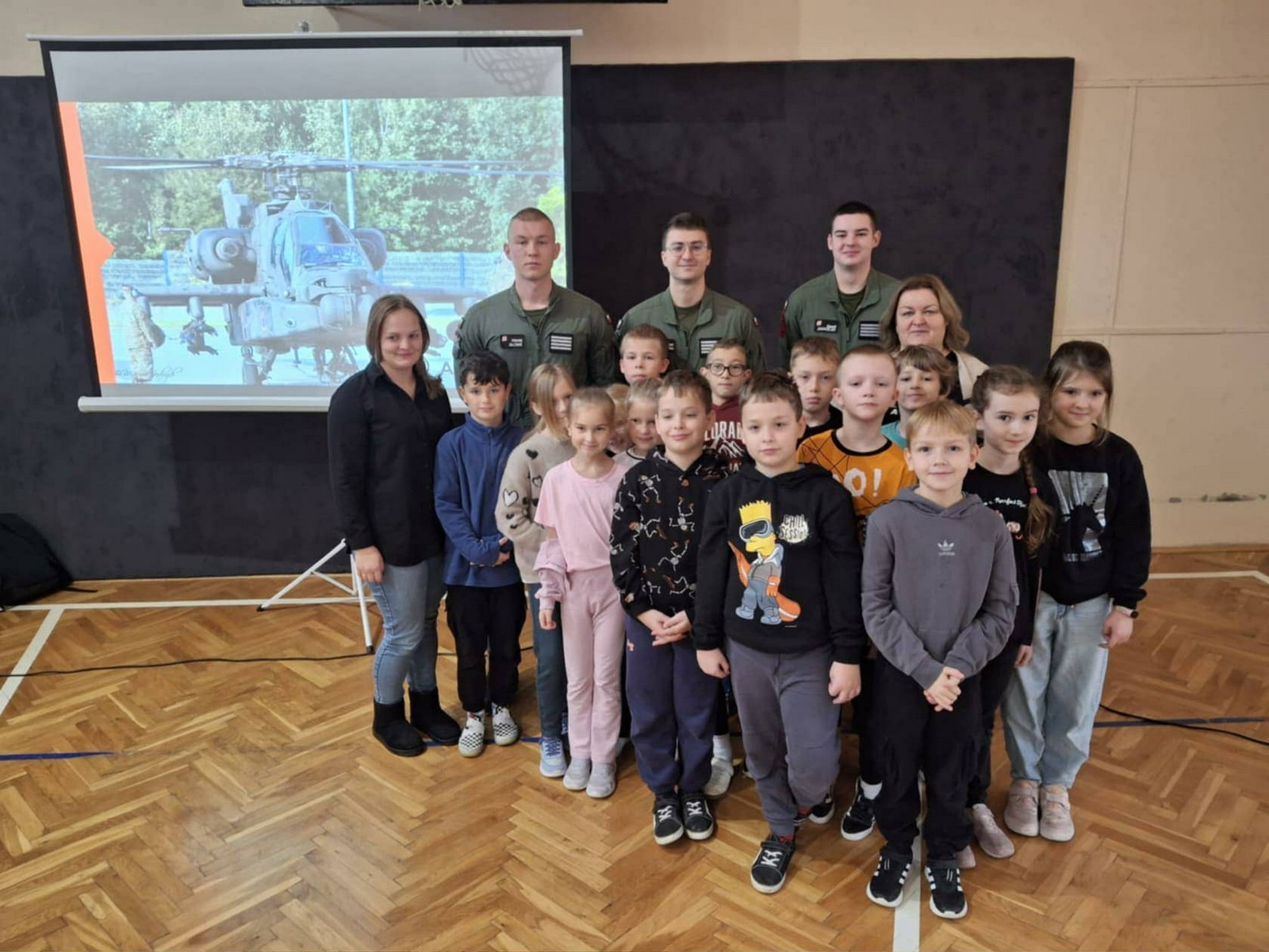 Natomiast klasy 3b i 3d wzięły udział w spotkaniu w ramach innowacji pedagogicznej „Poznaję ciekawe zawody”. Uczniowie mogli poznać zupełnie nową profesję, zobaczyć, jak wygląda droga do wymarzonego munduru, a także zadać wiele pytań dotyczących lotniczej codzienności.