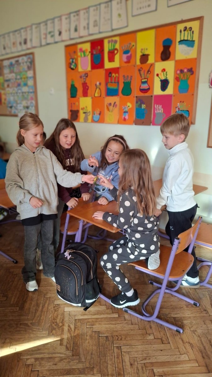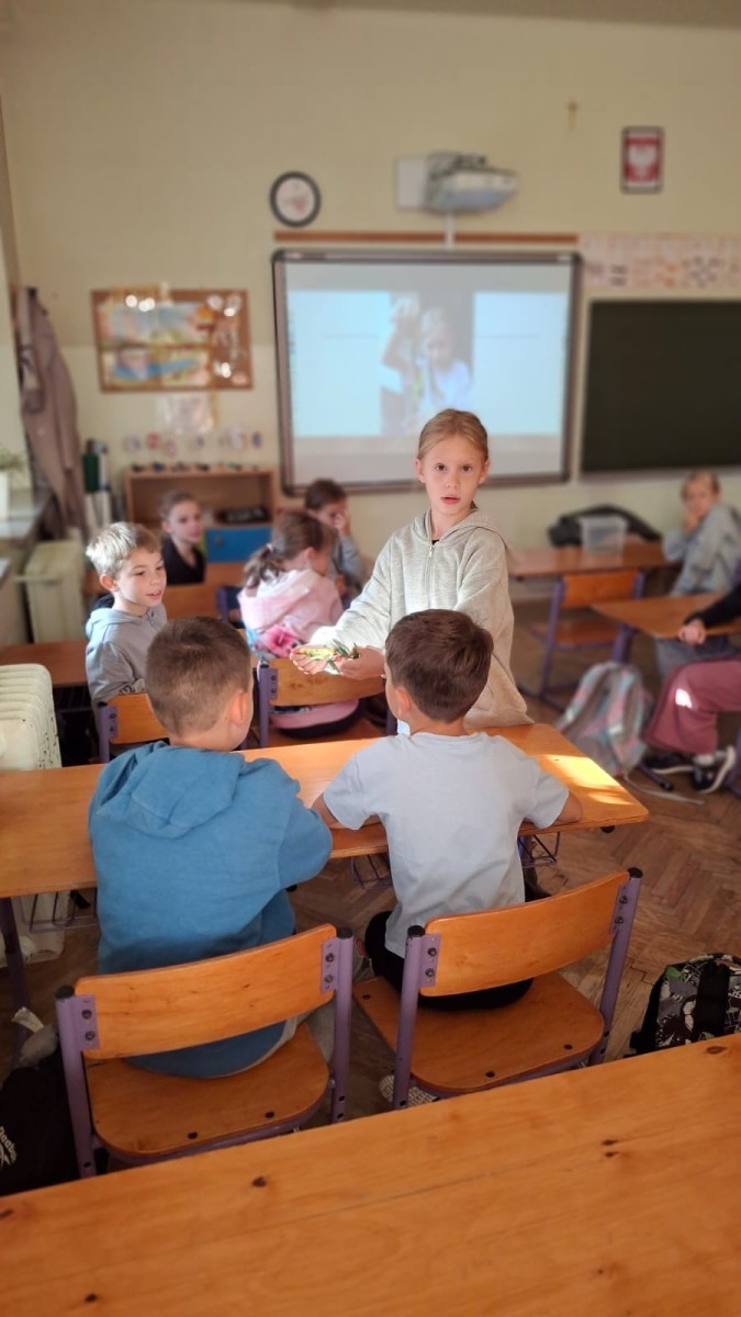 Świat przyrody niesie ze sobą wiele ciekawych zjawisk, które nieustannie zadziwiają. Dlatego też uczniowie z Kółka przyrodniczego z fascynacją podchodzą do realizacji programu, zachęcając do niego również uczniów z młodszych klas, aby zainteresować ich naukami przyrodniczymi. W ramach projektu „Przyrodnicze spotkania” uczniowie Kółka przyrodniczego wraz z klasą 2b rozpoczęli działania lekcją o motylach. Nauczycielem tej lekcji okazała się mała przyrodniczka Hania z klasy 2b, która przygotowała dla kolegów i koleżanek wspaniałą prezentację własnej hodowli motyli i największych gąsienic na świecie.