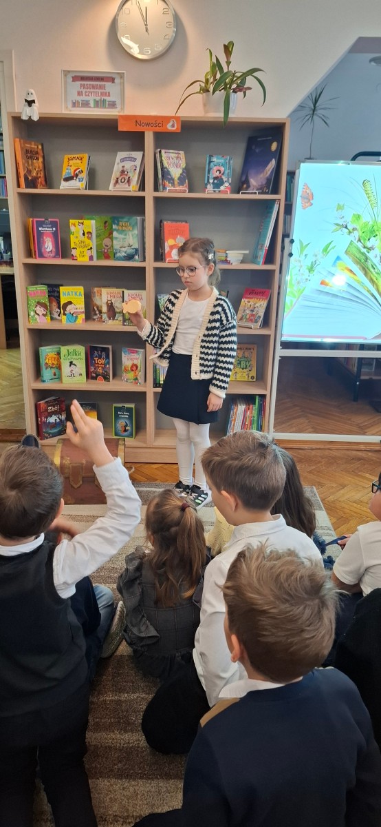 27 listopada w szkolnej bibliotece odbyła się uroczystość Pasowania na Czytelnika, w której uczestniczyli uczniowie klas pierwszych. To chwila kiedy najmłodsi w symboliczny sposób dołączają do grona czytelników rozpoczynając przygodę z literaturą. Uczniowie obejrzeli krótką inscenizację na tle prezentacji multimedialnej, w której książki przedstawiły się informując o tym co można w nich znaleźć. Dużo emocji wywołała zabawa „tajemniczy kufer”, gdzie dzieci mogły wykazać się wiedza z zakresu znanych baśni. Panie z biblioteki przedstawiły prośby książek oraz dlaczego warto je czytać. Opowiedziały również o tym jak działa biblioteka.