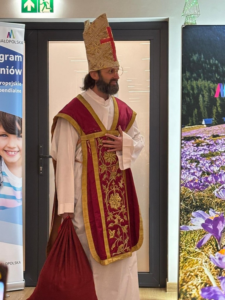 Stypendyści mogli również zwiedzić wystawę stałą „Pradzieje i średniowiecze w Małopolsce”. Nie zabrakło także wyjątkowego gościa – Świętego Mikołaja, który wprowadził świąteczną atmosferę i wywołał uśmiechy na twarzach uczestników.