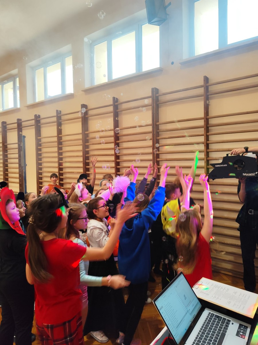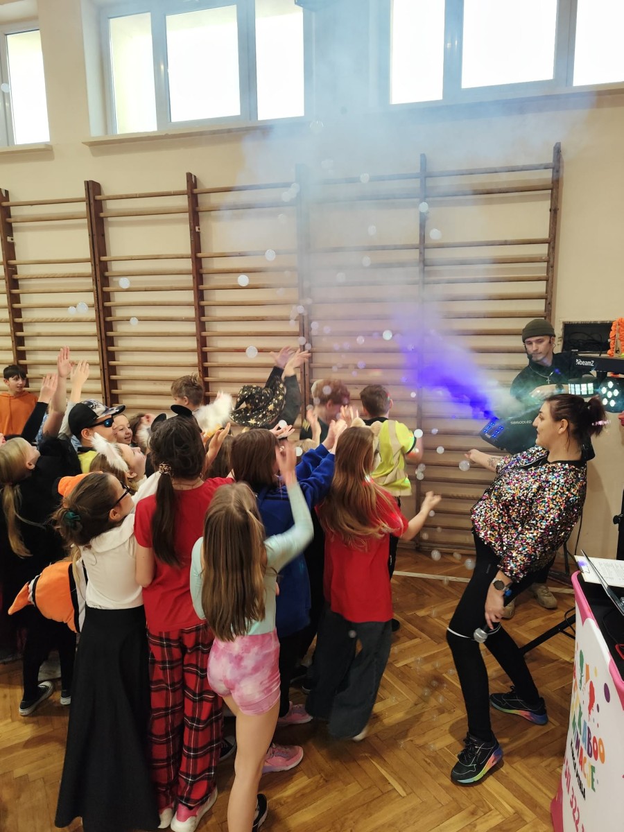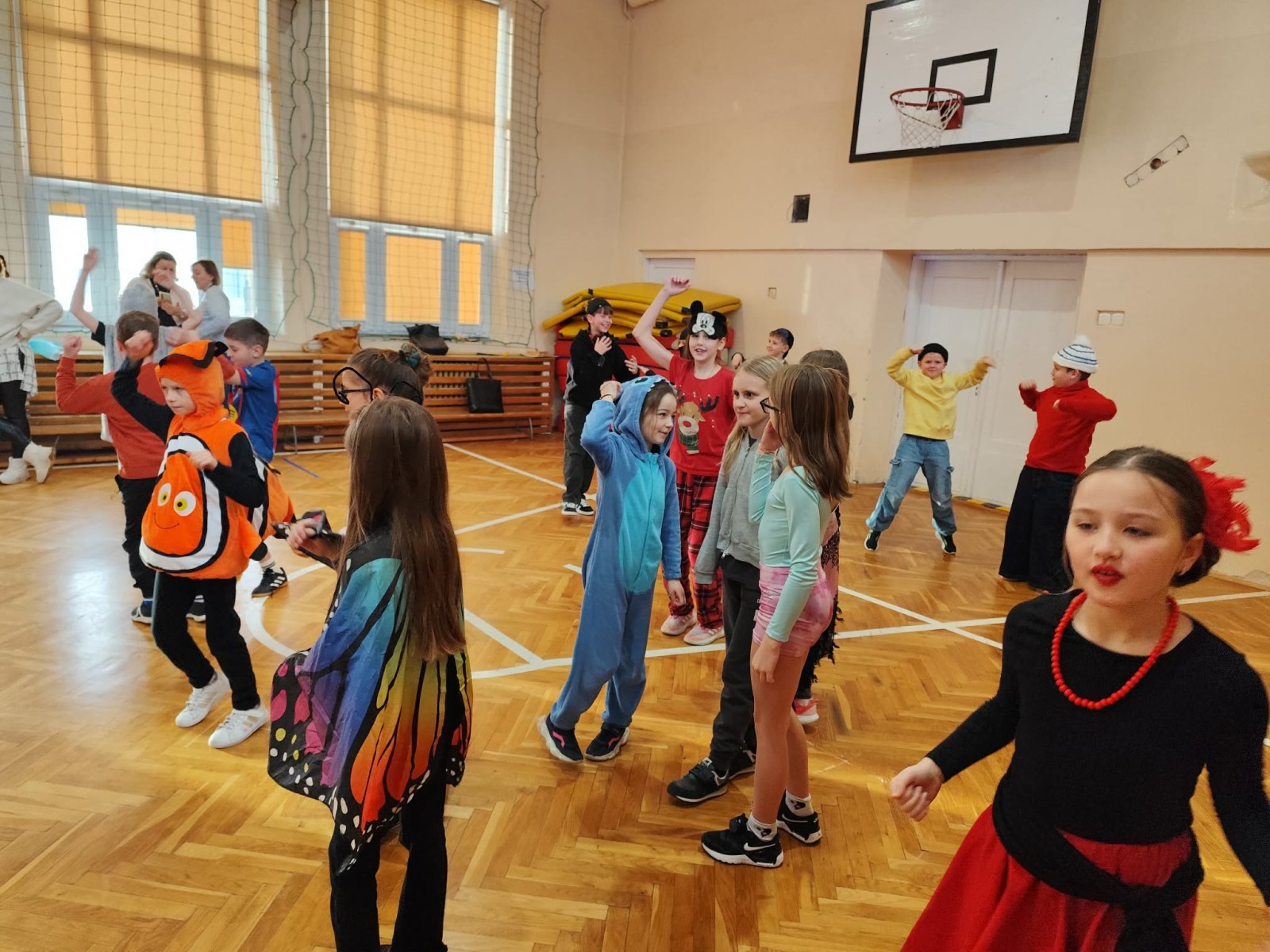 14 stycznia w naszej szkole odbył się radosny i kolorowy bal karnawałowy dla uczniów klas I–III. Tego dnia szkolna sala zamieniła się w prawdziwą krainę zabawy, muzyki i tańca. Zabawę poprowadziła firma animacyjna PeKaBo Animacje, która zadbała o wspaniałą atmosferę, liczne konkursy, tańce oraz animacje dostosowane do wieku dzieci. Uczniowie z ogromnym entuzjazmem brali udział we wspólnych zabawach, a uśmiechy nie znikały z ich twarzy przez cały czas trwania balu.
