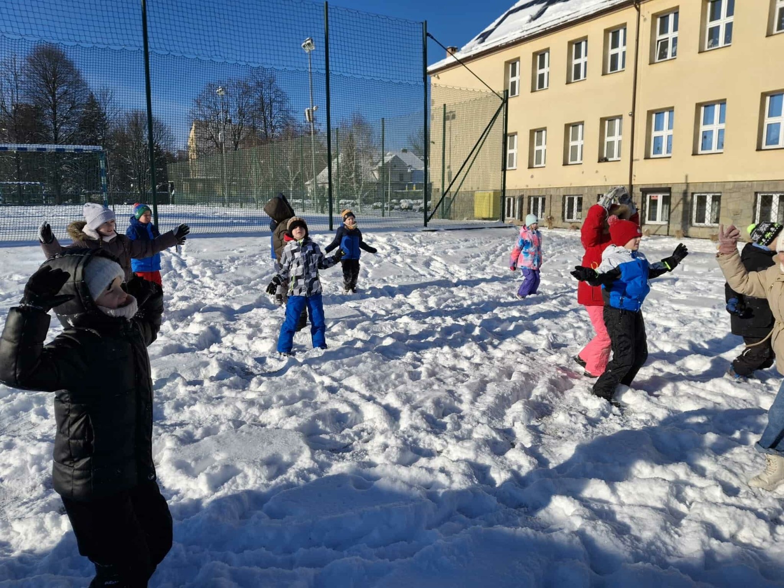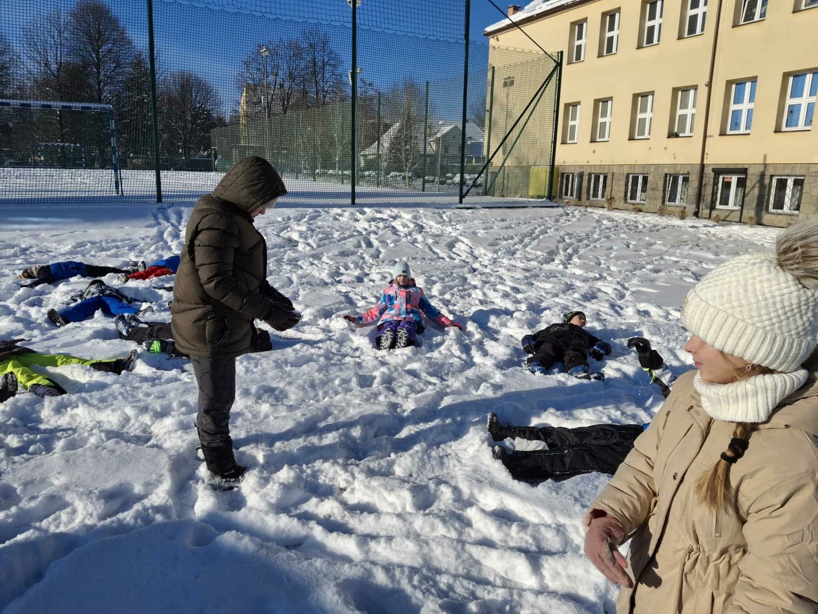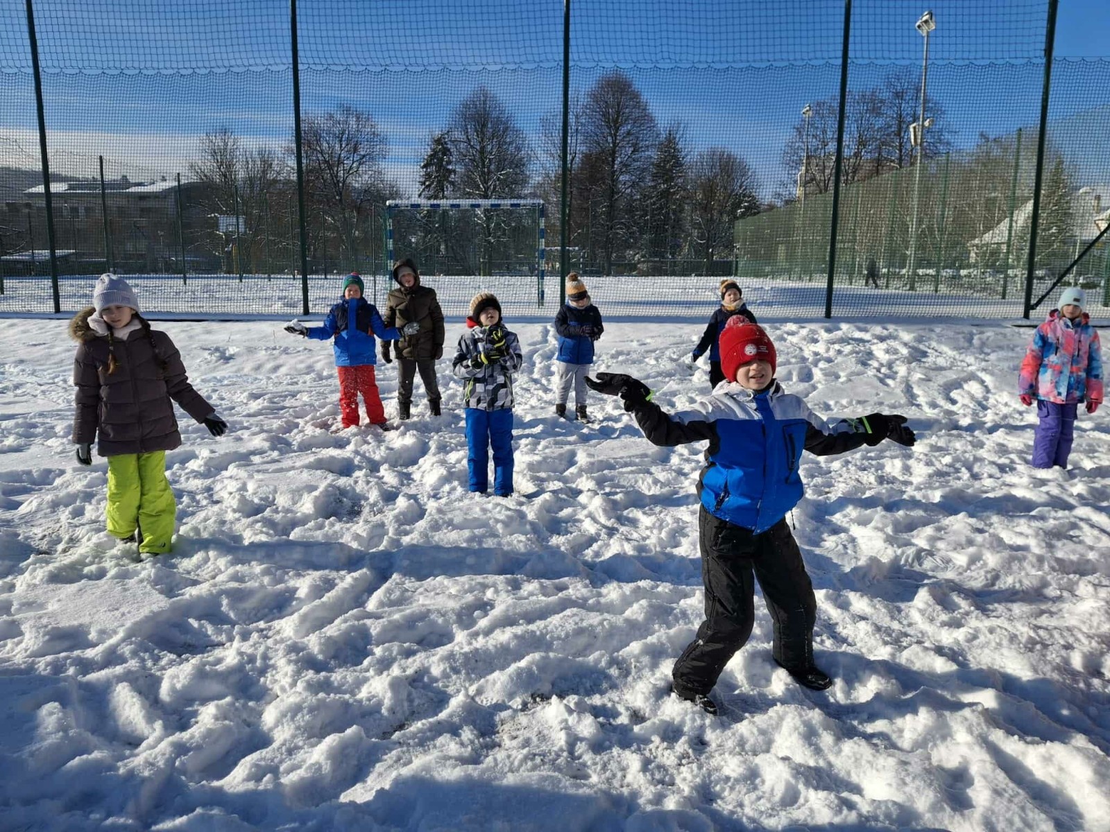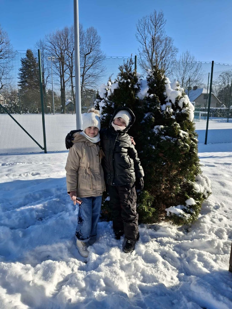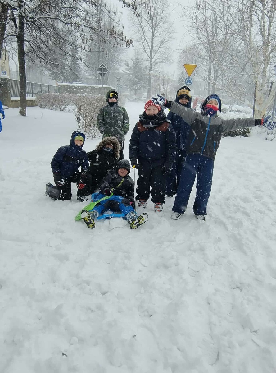 Wyjście w teren było nie tylko okazją do nauki, ale również do radosnej zabawy na świeżym powietrzu. Dzieci z entuzjazmem robiły anioły na śniegu, lepiły bałwana, brały udział w zimowych tańcach i wspólnych zabawach ruchowych. Takie aktywności dostarczyły uczniom wiele radości i pozytywnej energii.