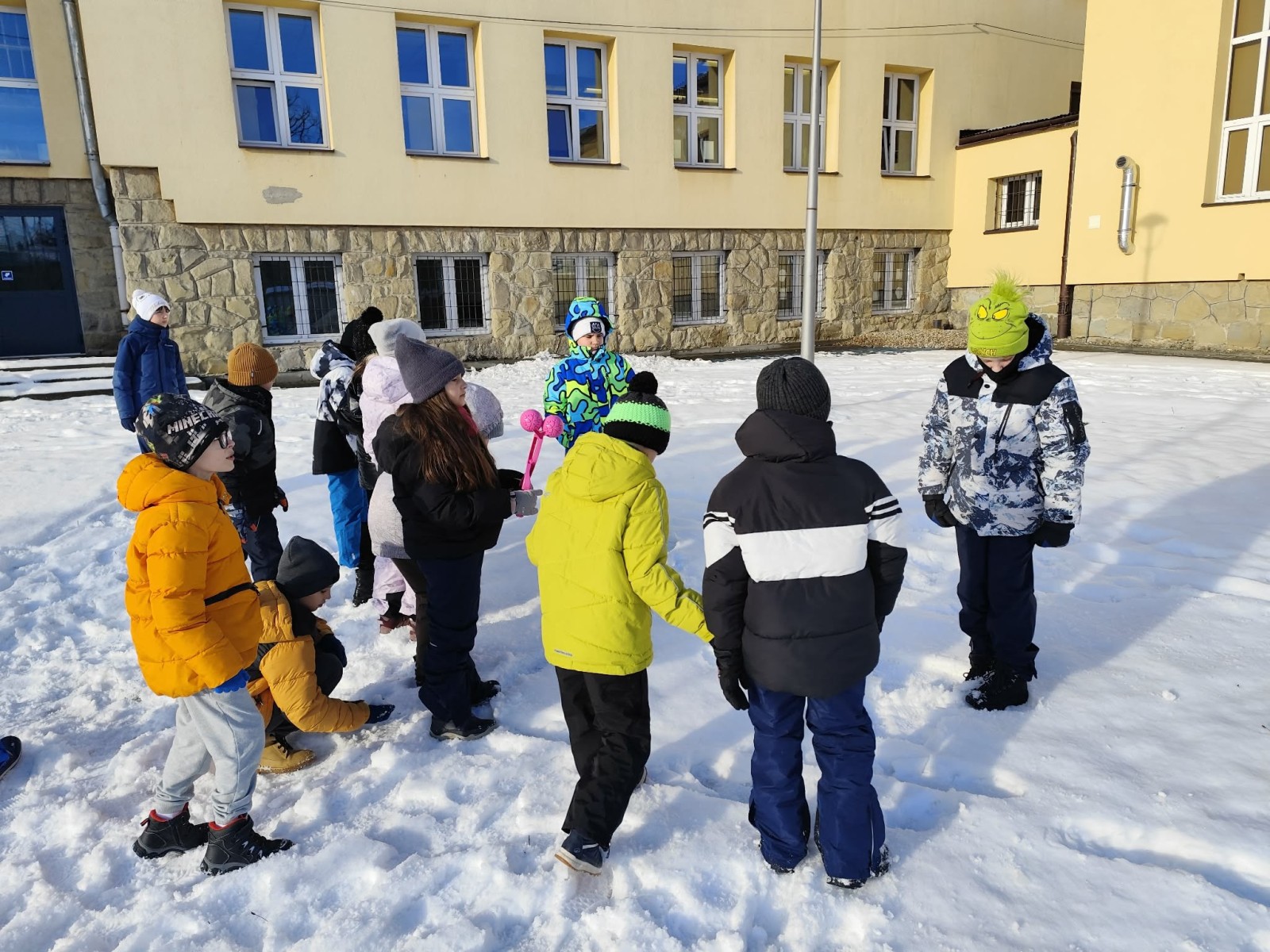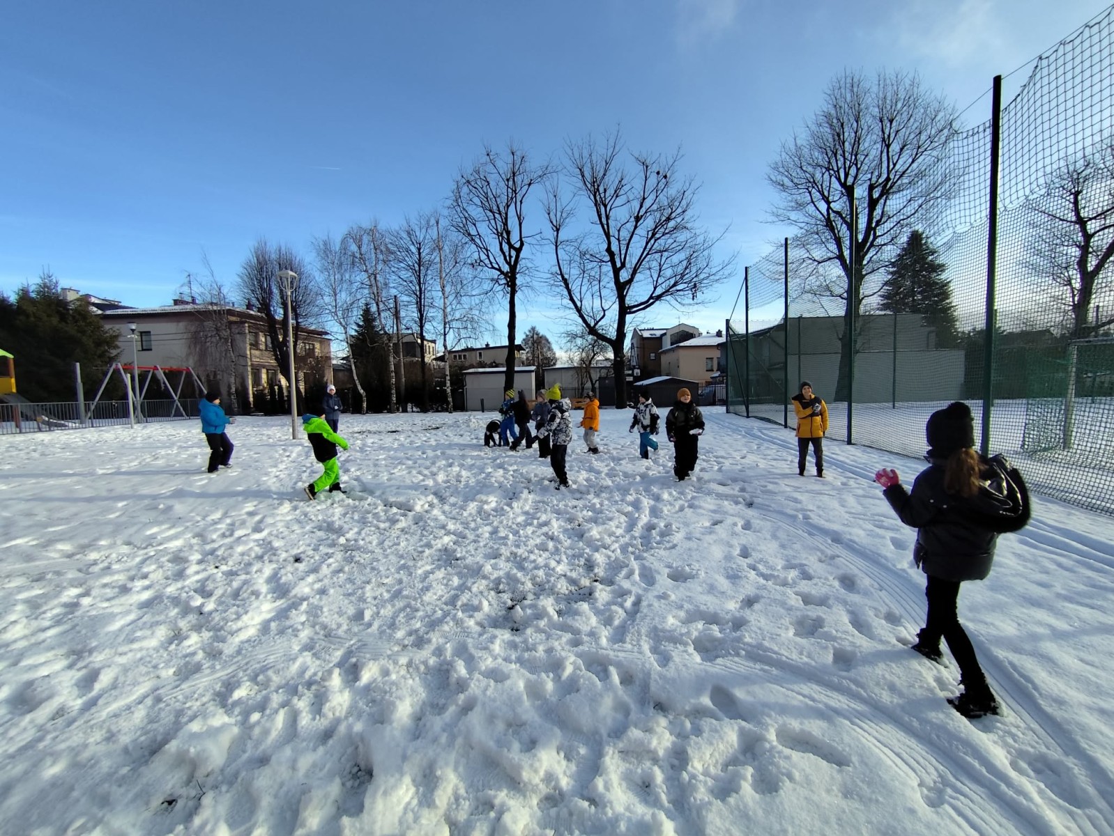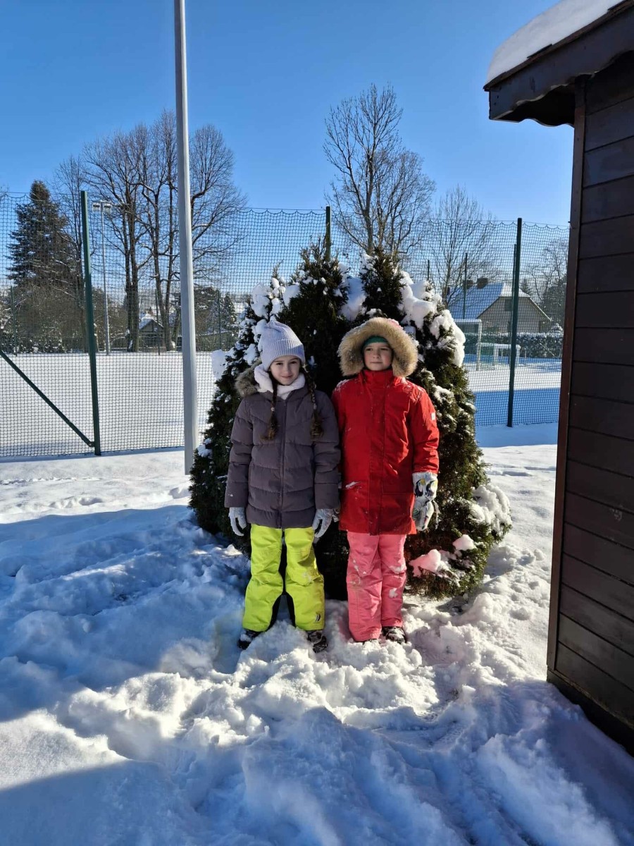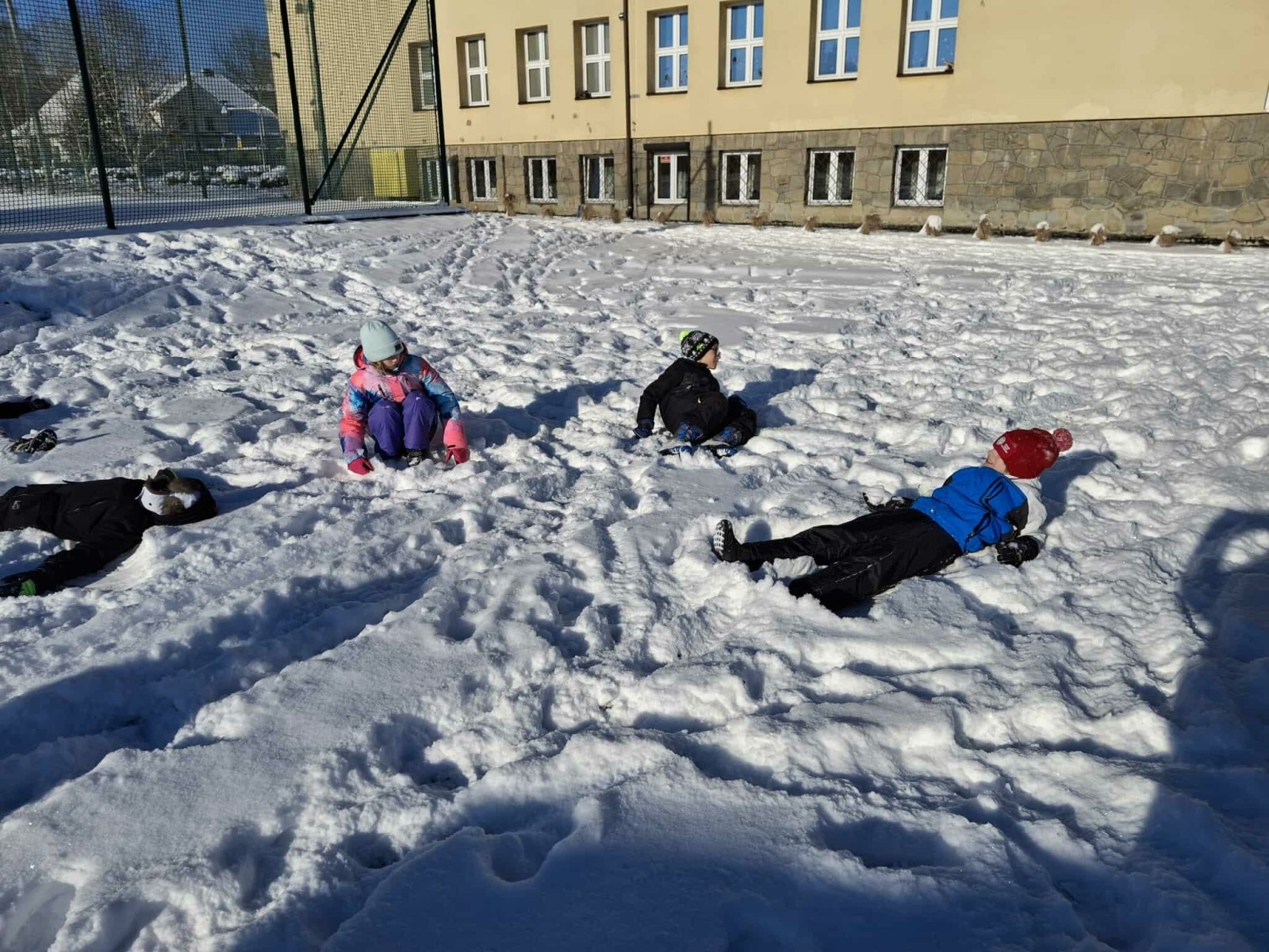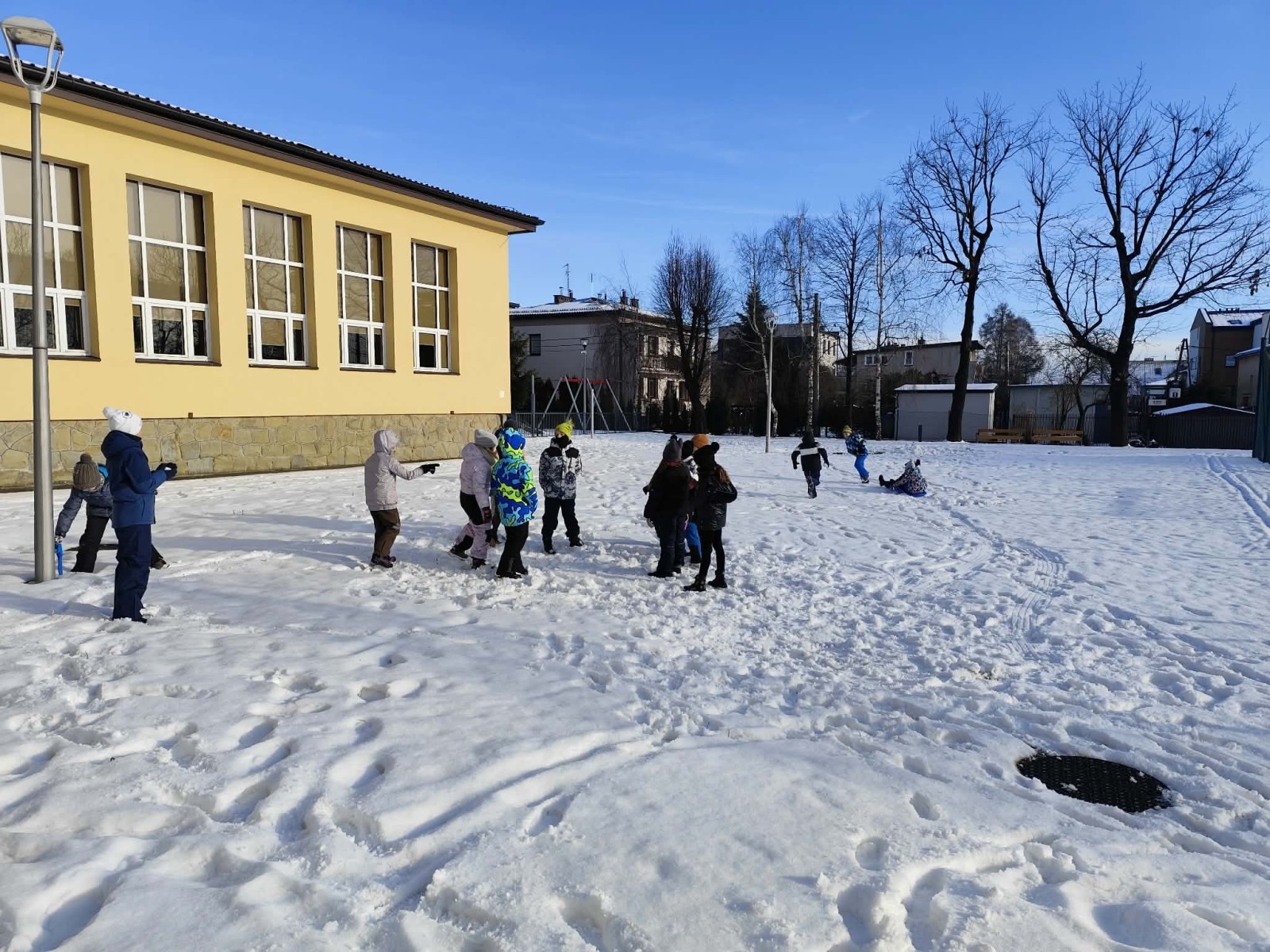 Wyjście w teren było nie tylko okazją do nauki, ale również do radosnej zabawy na świeżym powietrzu. Dzieci z entuzjazmem robiły anioły na śniegu, lepiły bałwana, brały udział w zimowych tańcach i wspólnych zabawach ruchowych. Takie aktywności dostarczyły uczniom wiele radości i pozytywnej energii.