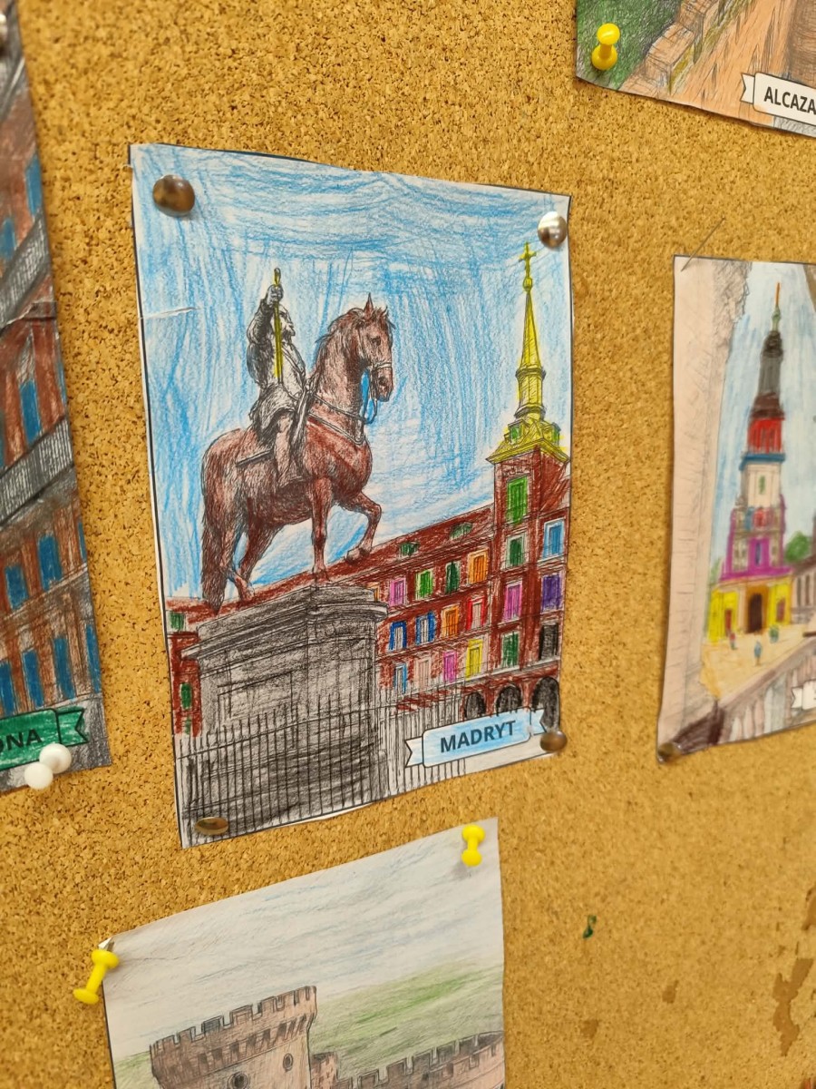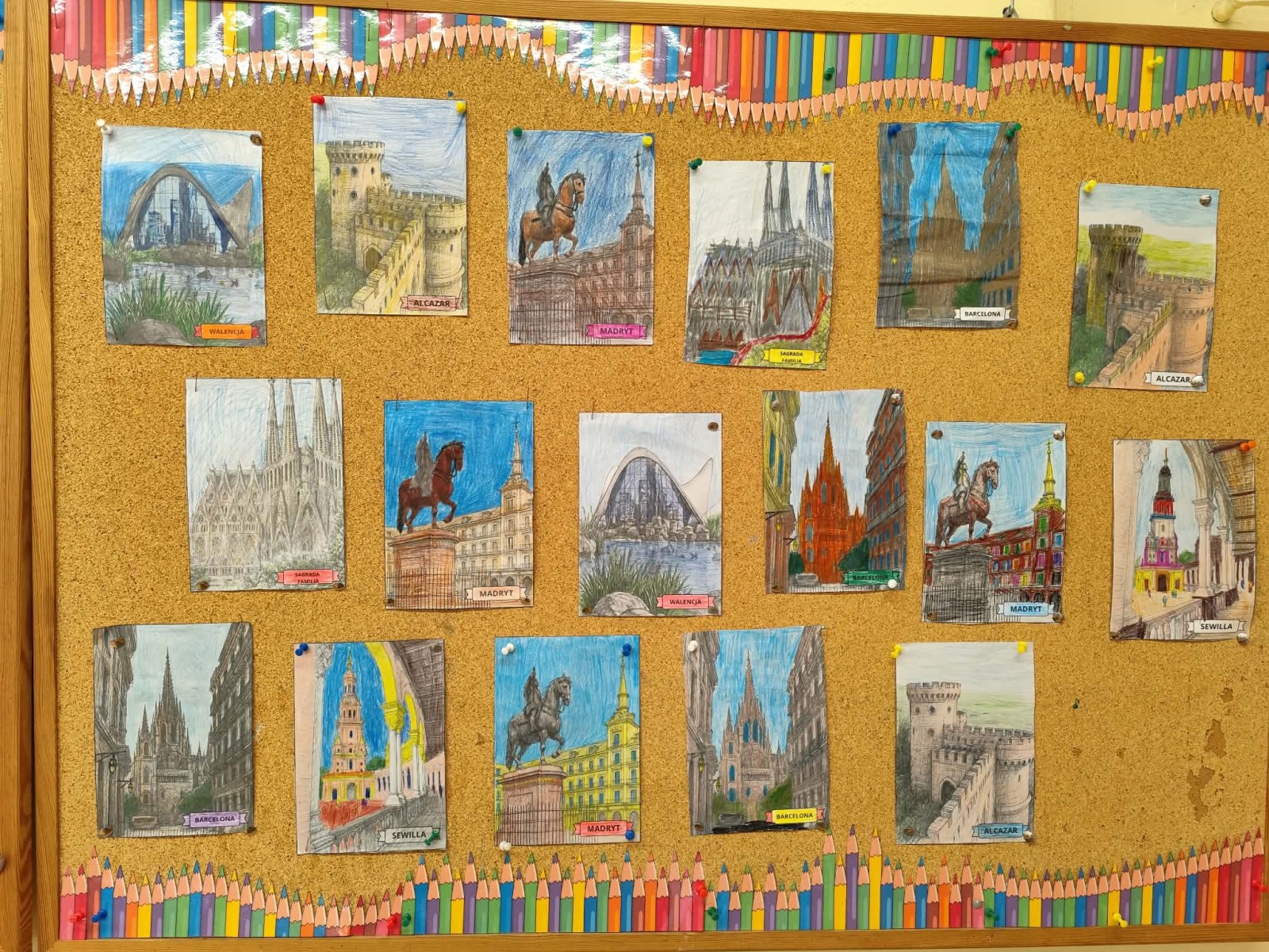 Nie zabrakło także elementów językowych – uczniowie nauczyli się liczyć do 10 w języku hiszpańskim, poznali kolory oraz nazwy miesięcy, a także dowiedzieli się wielu ciekawostek dotyczących fauny i flory Hiszpanii. Zdobywana wiedza była utrwalana poprzez rozmowy, zabawy edukacyjne oraz twórcze działania plastyczne.