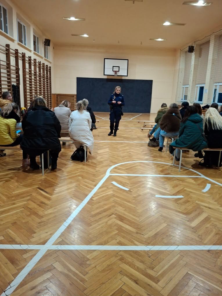 W ramach realizacji działań wynikających z Programu Profilaktyczno-Wychowawczego naszej szkoły, w dniach 27.01 i 28.01.2026r odbyły się spotkania funkcjonariuszy Komendy Powiatowej Policji z Myślenic z rodzicami uczniów. Temat zagrożeń w Internecie przedstawili: sierżant sztabowy Paulina Róg oraz aspirant Sebastian Kruk. Policjanci omówili zagrożenia związane z nadmiernym korzystaniem z sieci, w tym: uzależnienie od gier i mediów społecznościowych, cyberprzemoc oraz kontakt z nieodpowiednimi treściami. Zdefiniowali pojęcie uzależnienia od komputera czy telefonu i wskazali wynikające z niego poważne konsekwencje fizyczne i psychiczne dla dzieci i młodzieży: bezsenność, stany lękowe, depresja, zaburzenia odżywiania, wahania nastroju, problemy z koncentracją i pamięcią.
