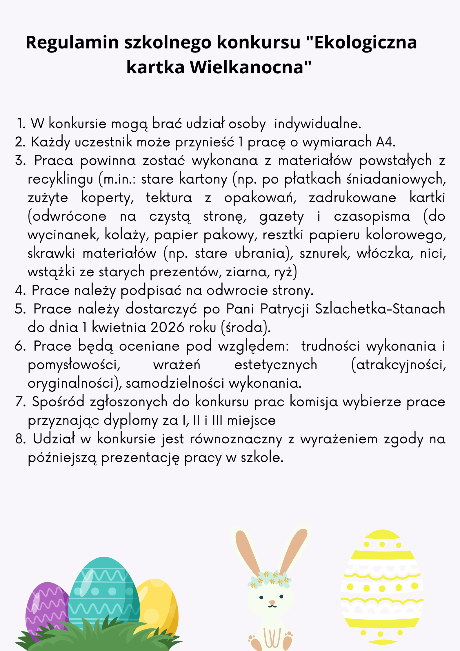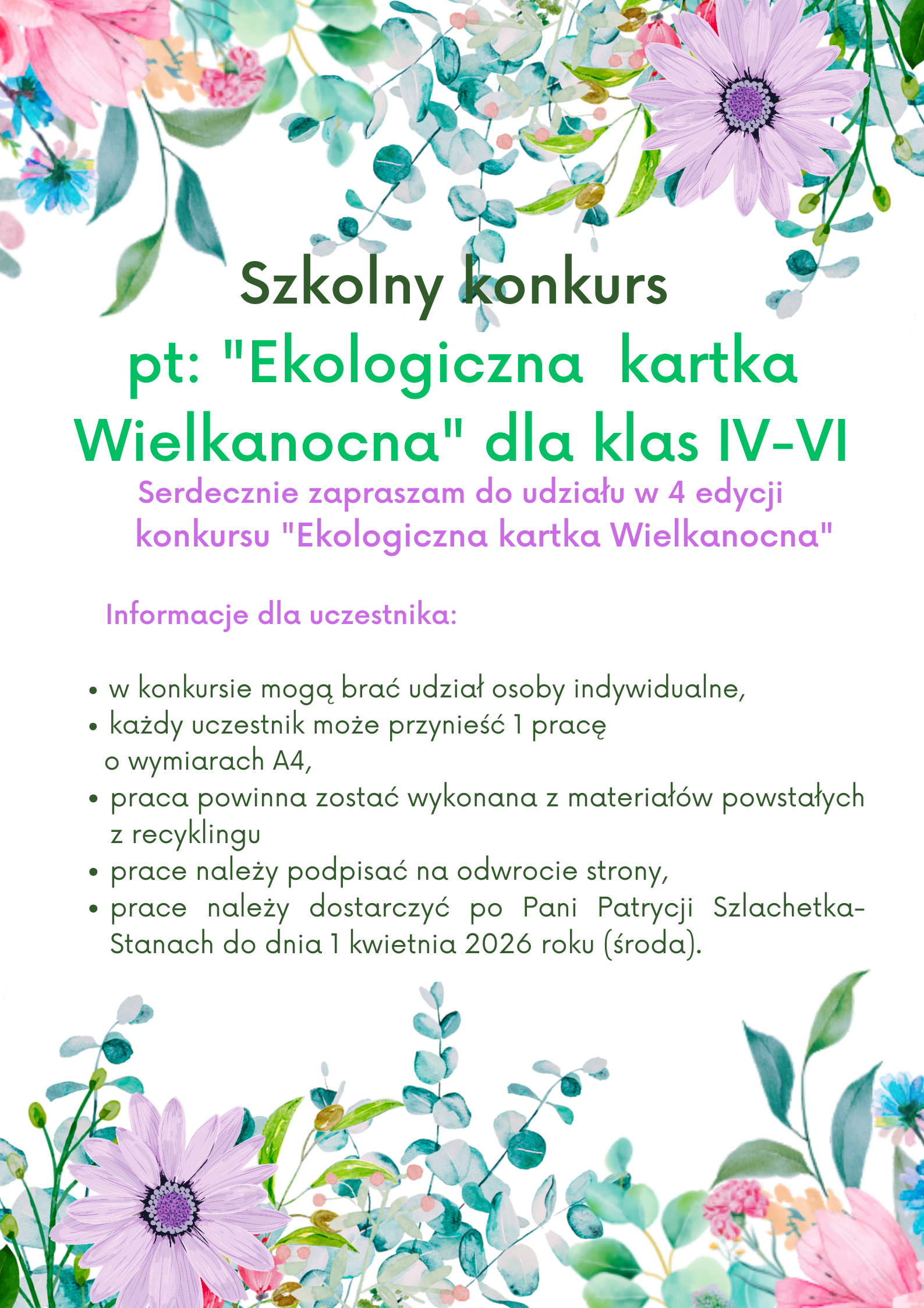 KONKURS EKOLOGICZNA KARTKA WIELKANOCNA DLA KLAS 4-6
