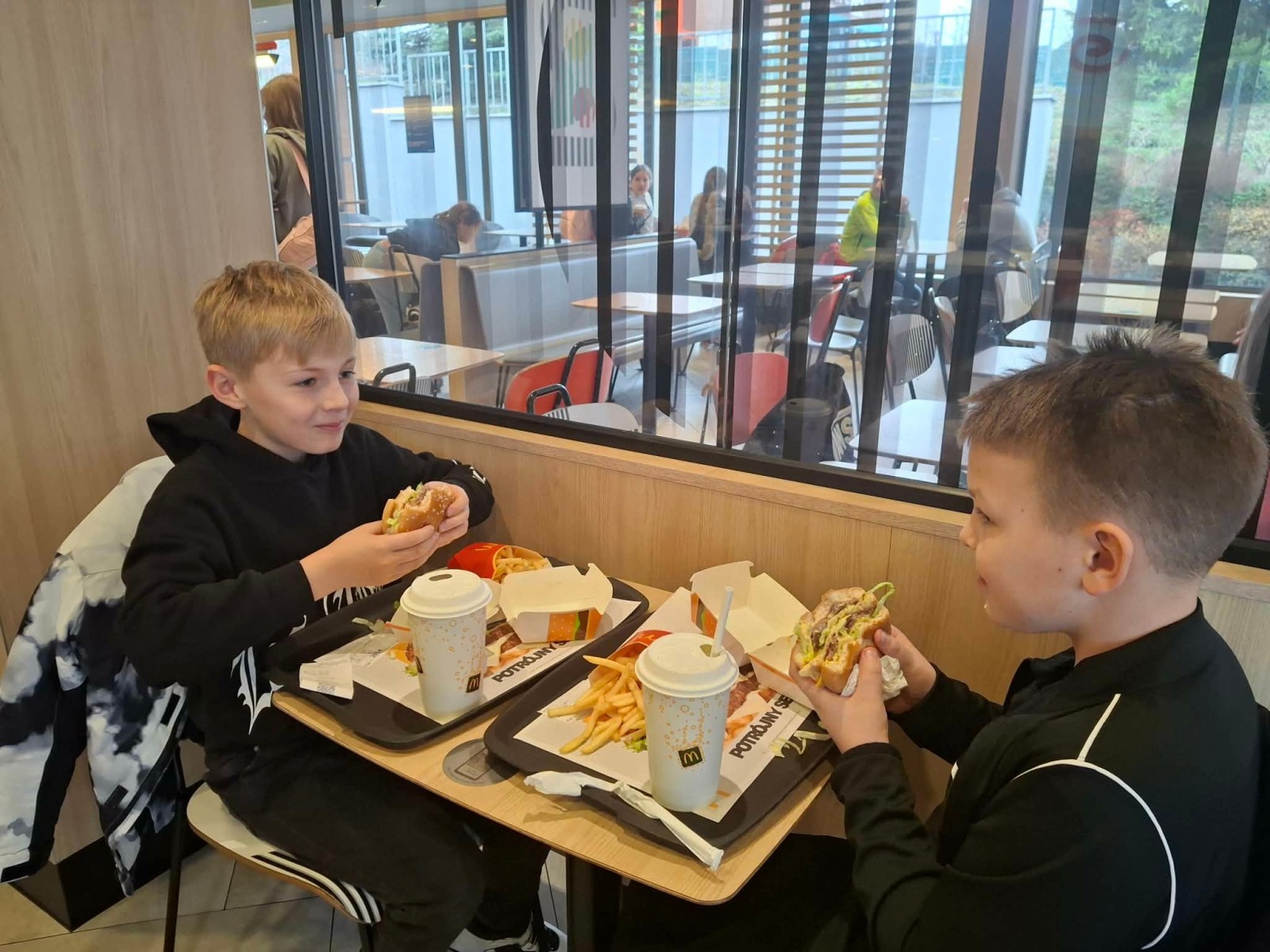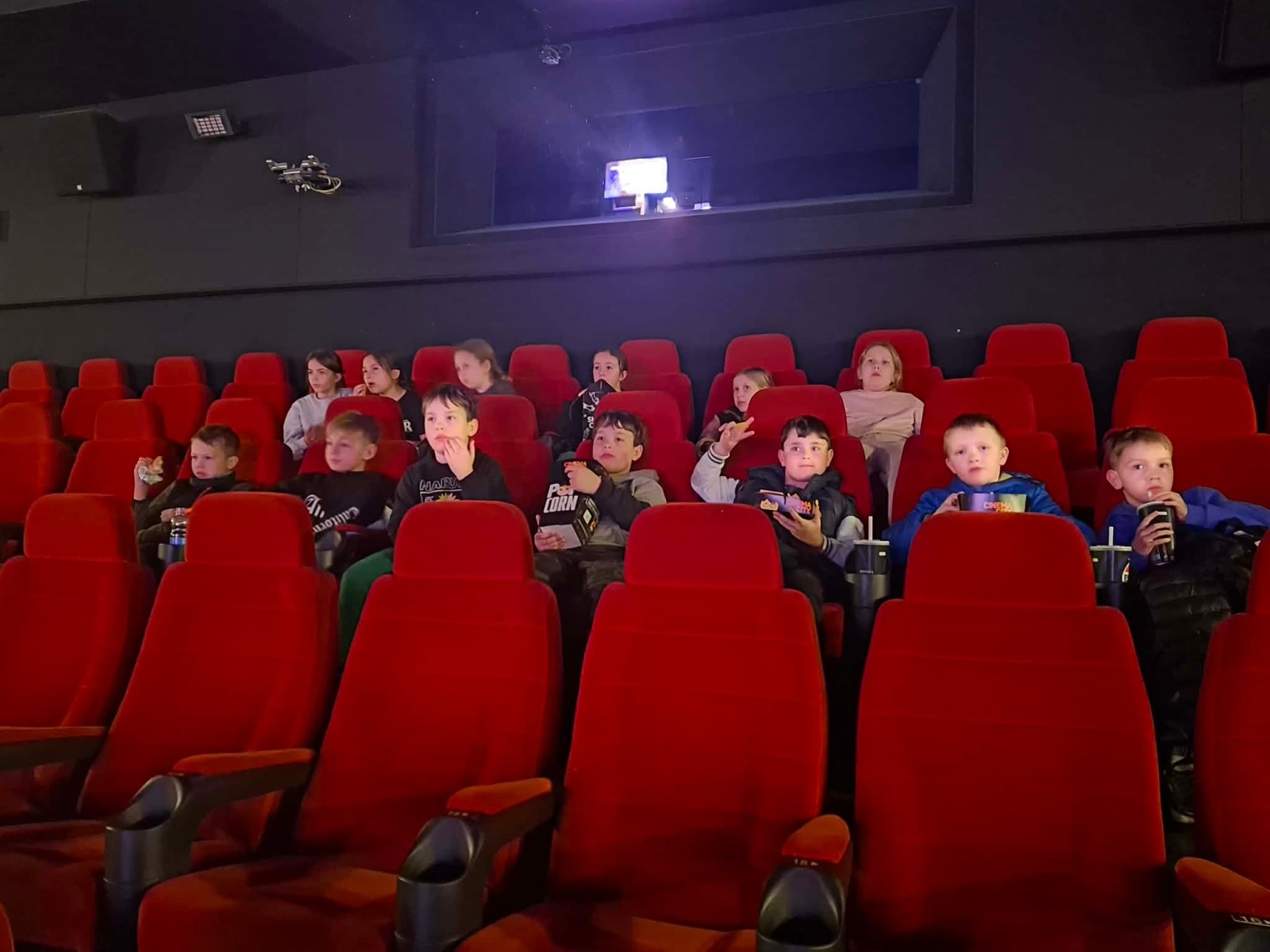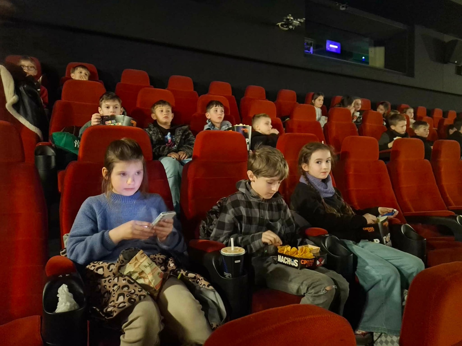 Kolejnym punktem wycieczki była wizyta w kinie, gdzie obejrzeliśmy animowany film Hopnięci. To pełna humoru i przygód opowieść, która dostarczyła dzieciom wielu emocji oraz wywołała uśmiech na ich twarzach. Na zakończenie dnia nie mogło zabraknąć chwili relaksu i wspólnego posiłku w McDonald’s, co było dla uczniów dodatkową atrakcją.