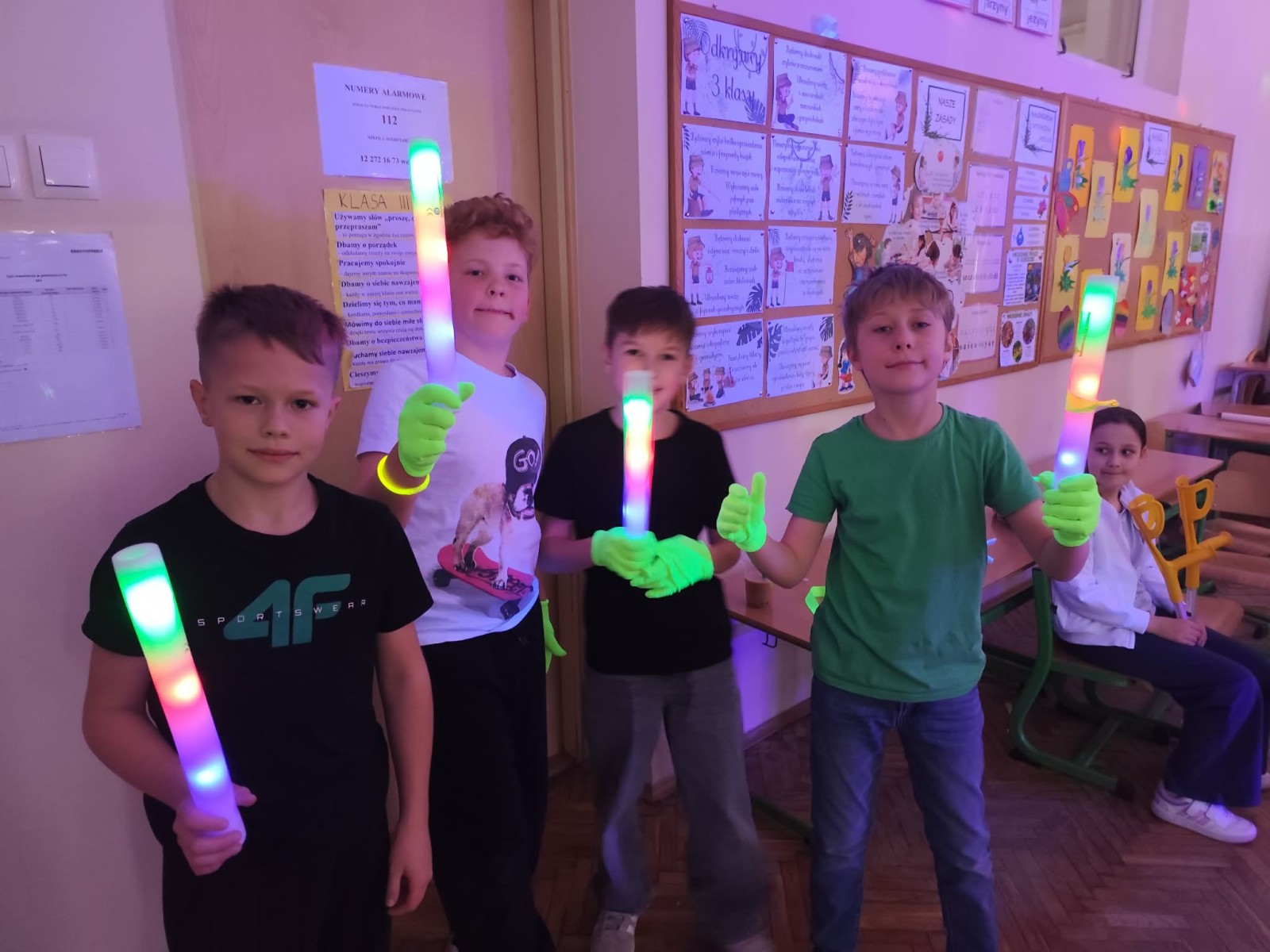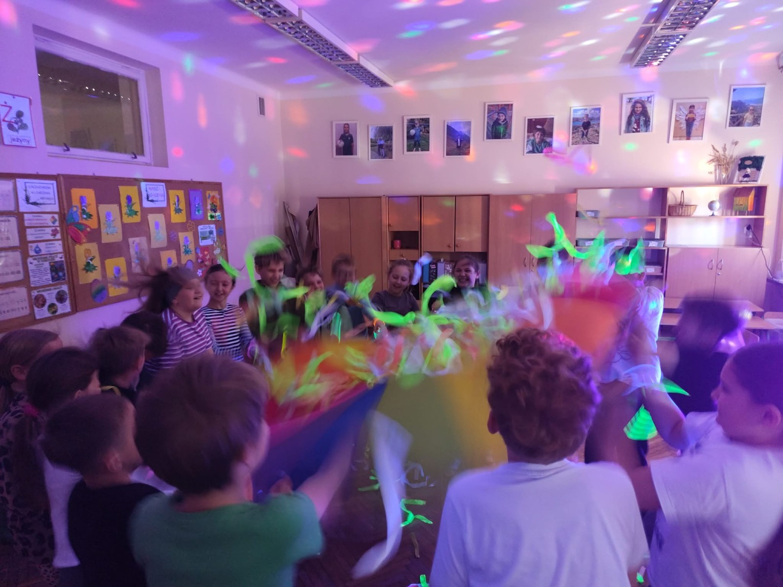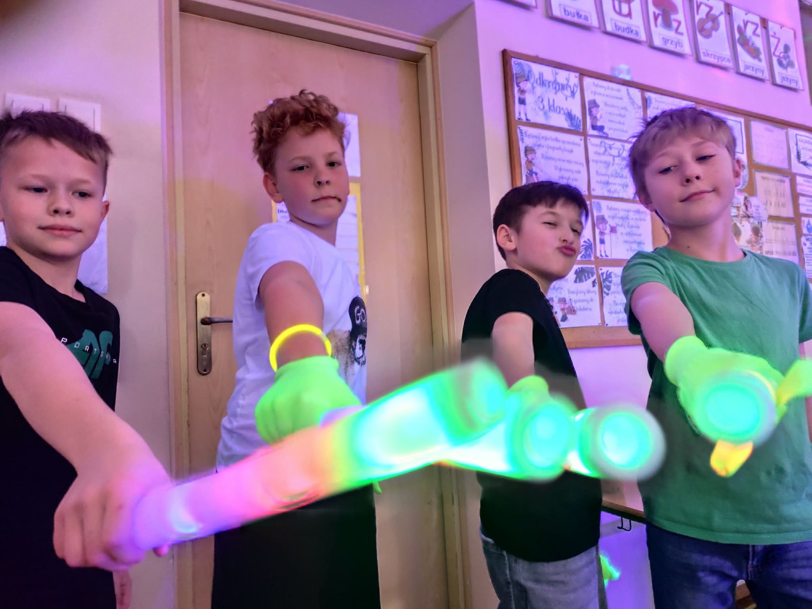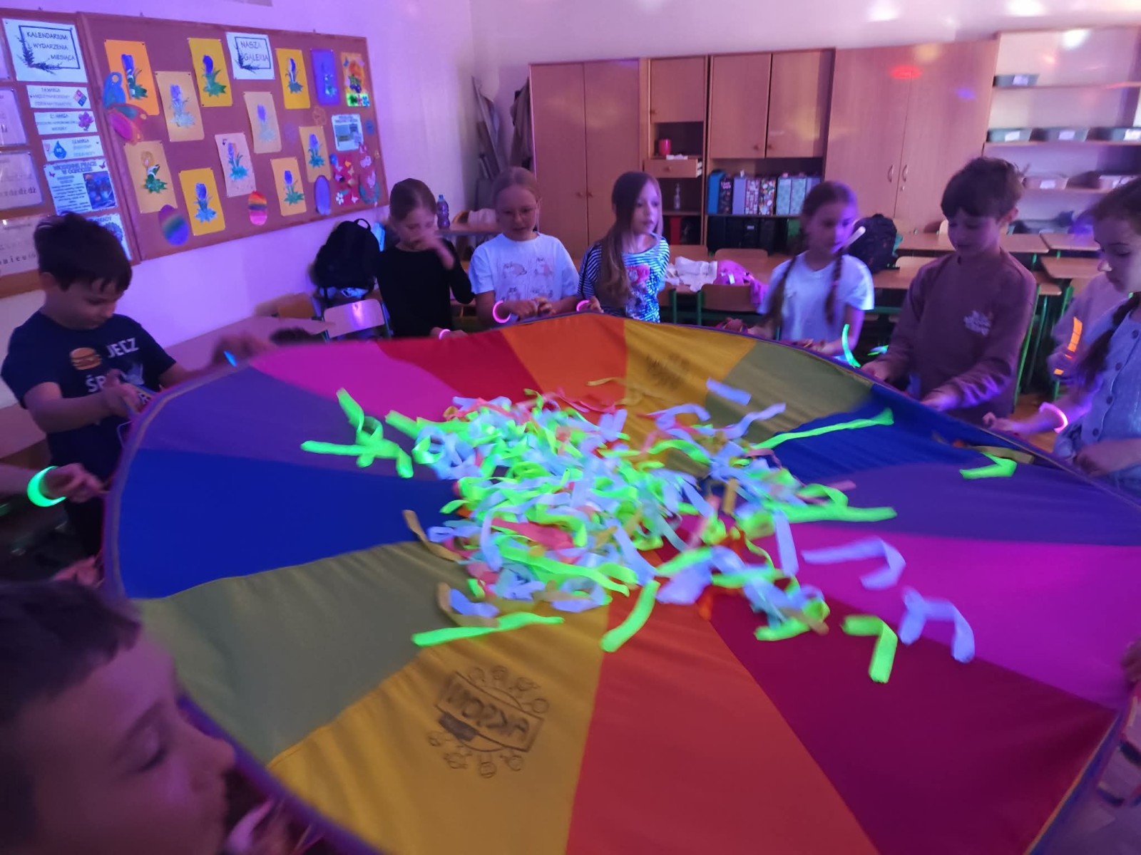 Najwięcej radości sprawiła nam jednak część praktyczna! Wspólnie uczyliśmy się układu tanecznego, a sala zamieniła się w prawdziwy parkiet taneczny. Towarzyszyły nam kolorowe światła, chusta Klanza, świecące rękawiczki i tuby UV, które stworzyły niesamowity klimat. Nie zabrakło również konfetti, które dodało całemu wydarzeniu wyjątkowego charakteru. Na zakończenie czekała na wszystkich miła niespodzianka – wspólnie delektowaliśmy się pyszną bubble tea. To było pełne energii, radości i inspiracji spotkanie, które na długo pozostanie w naszej pamięci!