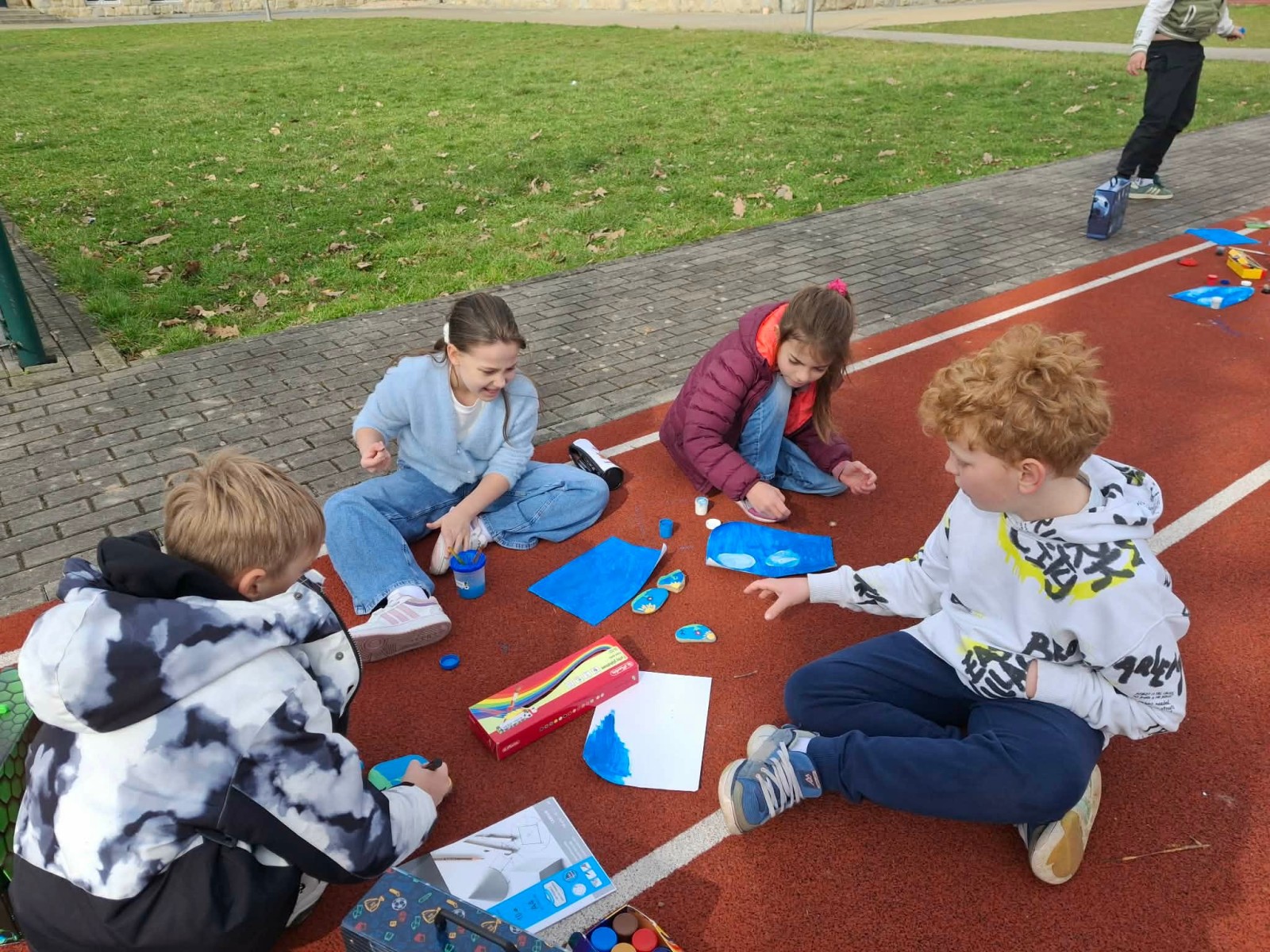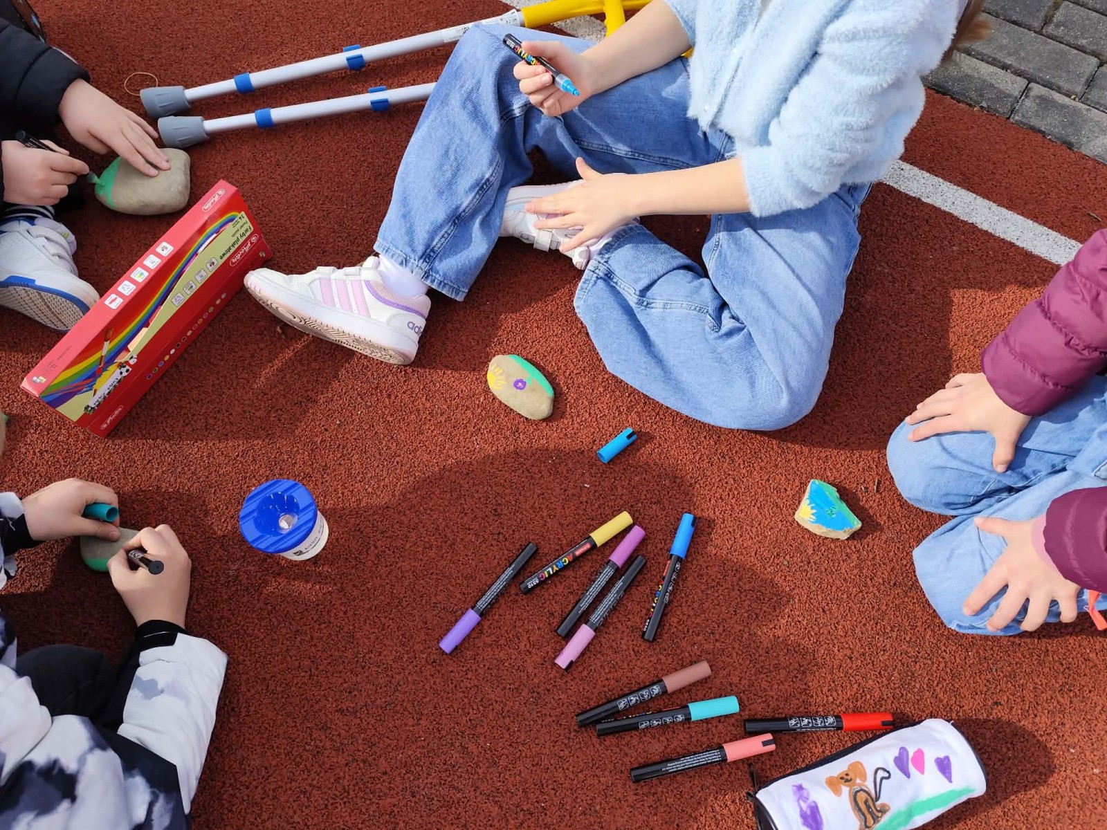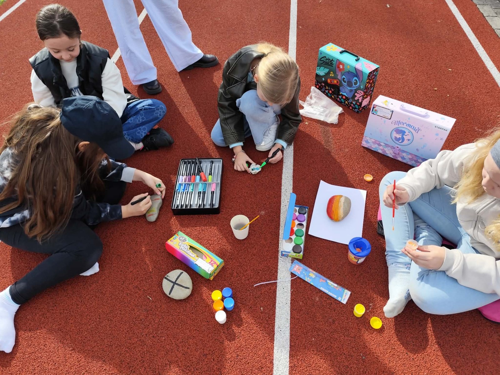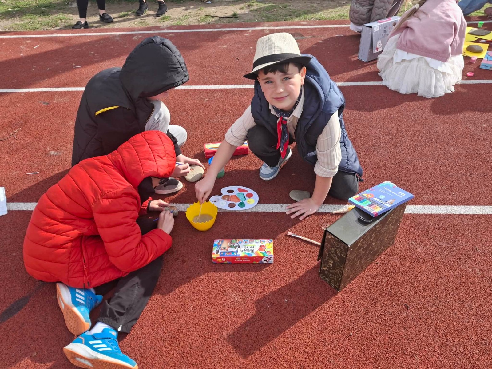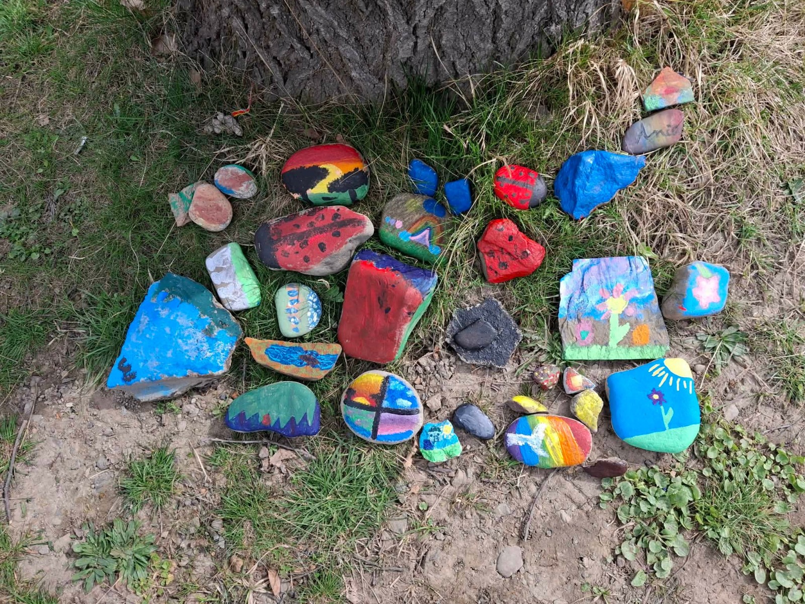 Drugim zadaniem były „Opowieści z kamienia”. Uczniowie ozdabiali kamienie farbami i pisakami według własnych pomysłów. Powstały niezwykle ciekawe i kreatywne prace – od kolorowych wzorów, przez postacie, aż po całe sceny inspirowane literaturą. Szczególną uwagę zwróciły kamienie przedstawiające krajobraz afrykański, będące efektem inspiracji lekturą „Afryka Kazika”. To doskonały przykład na to, jak można połączyć czytelnictwo z działaniami artystycznymi.