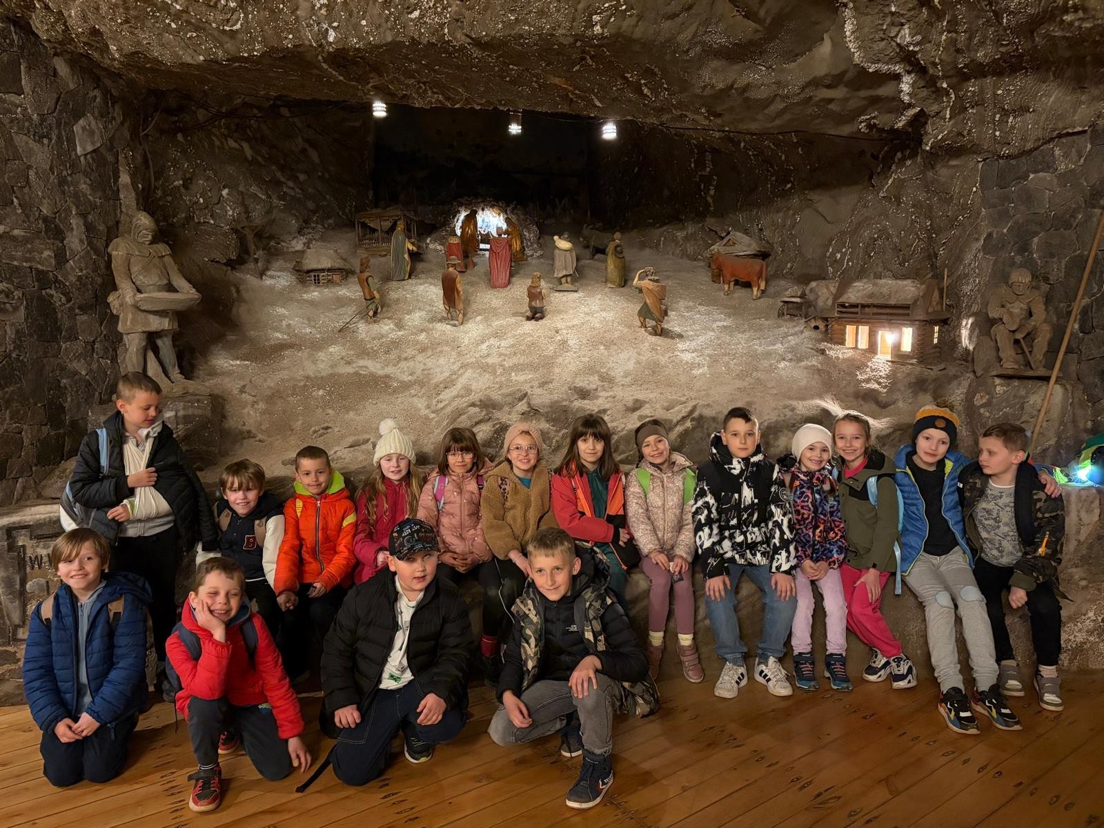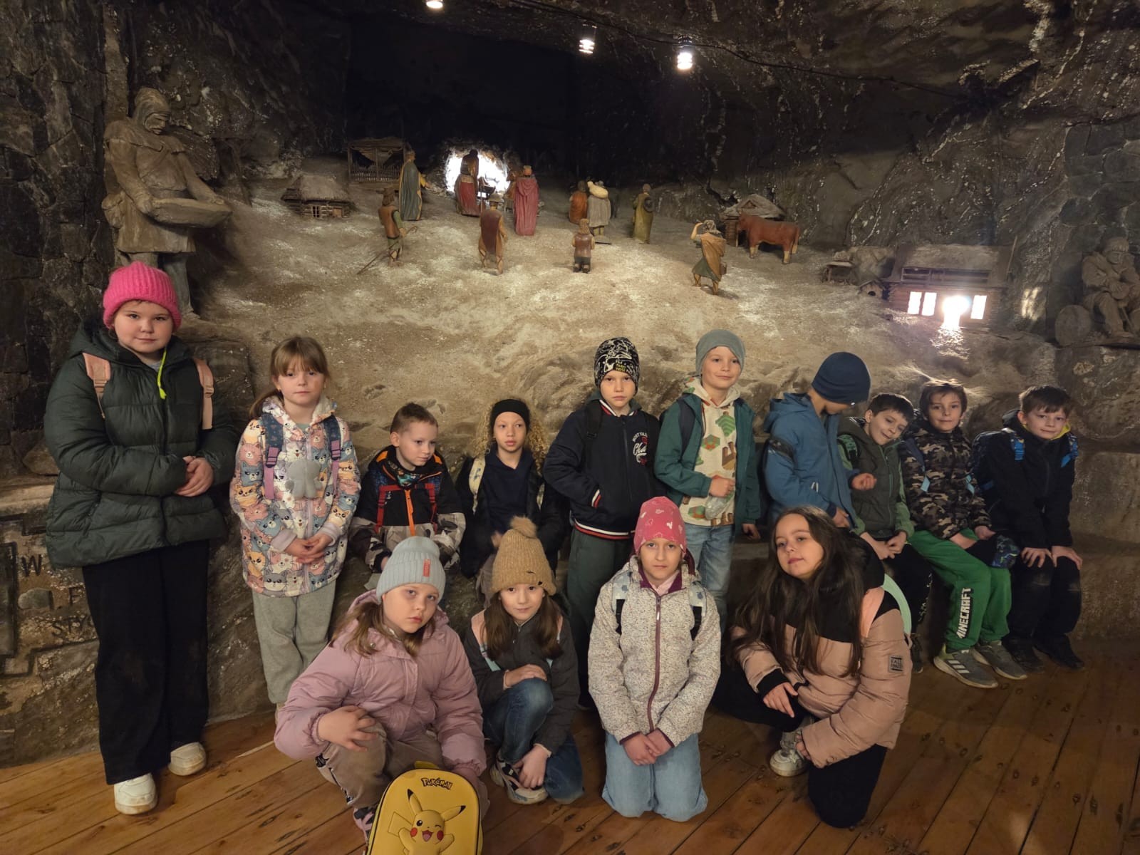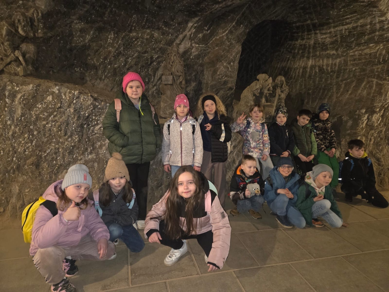 Podczas zwiedzania uczniowie mieli okazję zobaczyć podziemne korytarze oraz narzędzia wykorzystywane dawniej przez górników. Szczególne zainteresowanie wzbudziły rzeźby wykonane z soli oraz opowieści o ciężkiej pracy ludzi pracujących w kopalni. Dzieci z dużym zaangażowaniem słuchały przewodnika i zadawały wiele pytań.