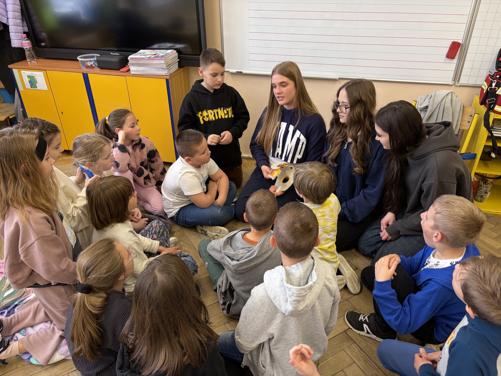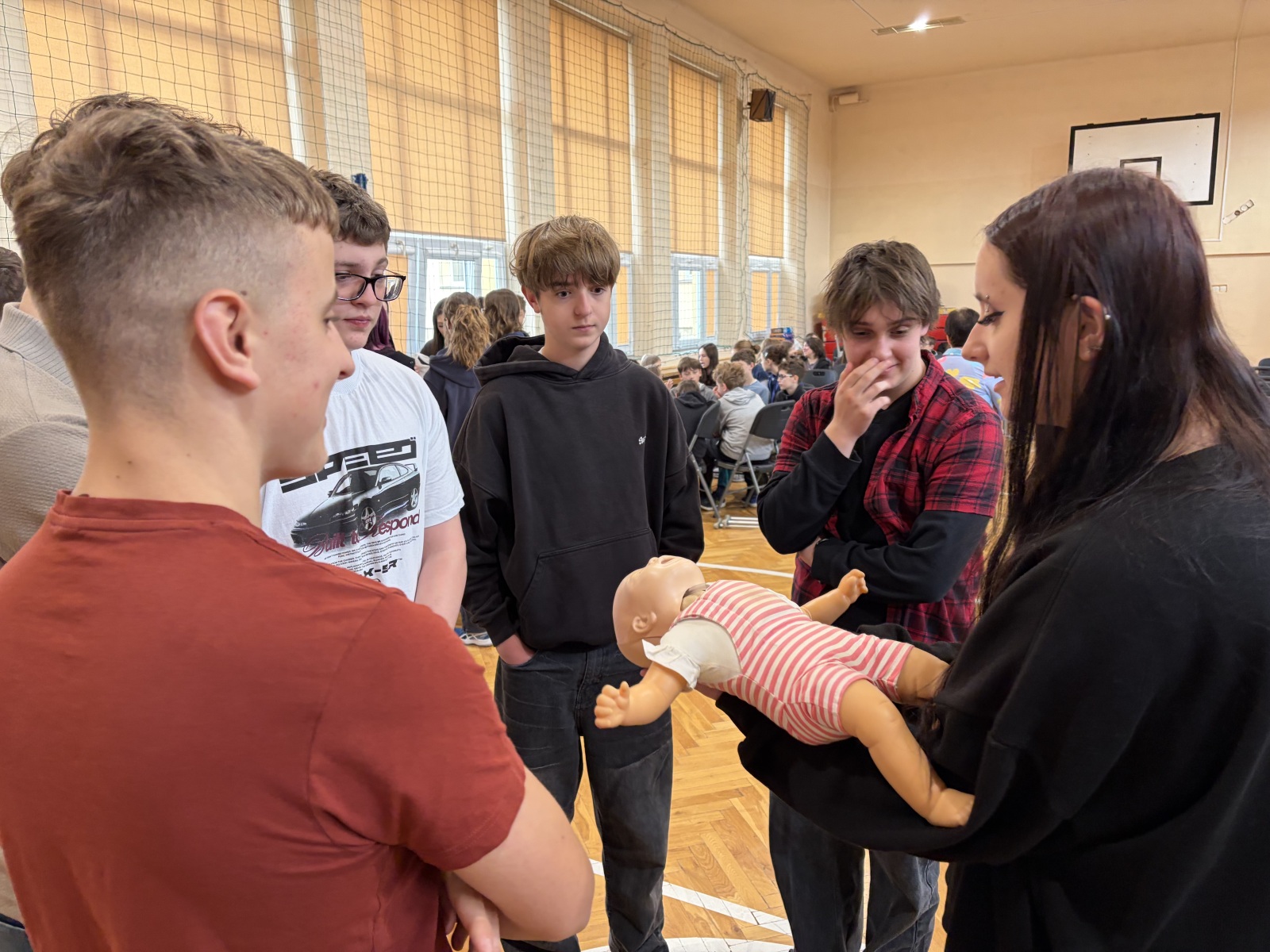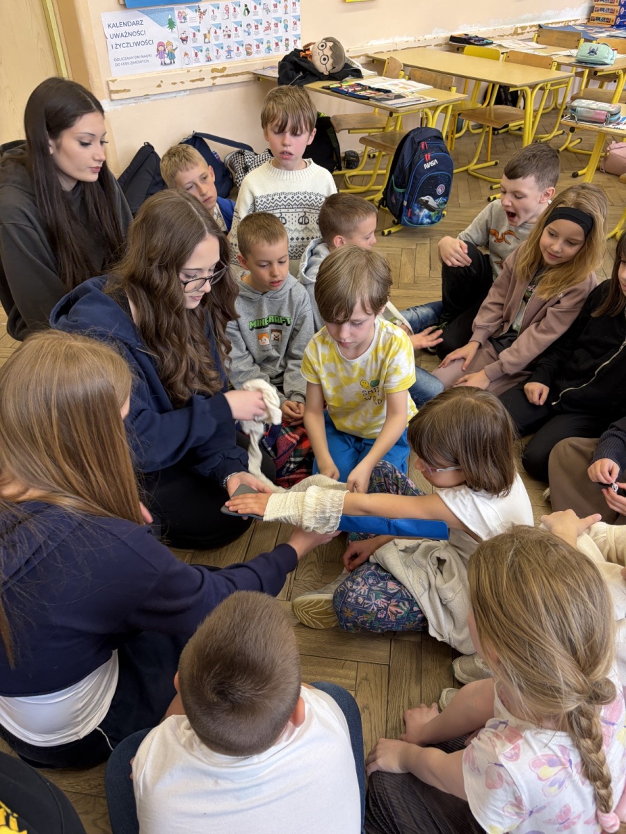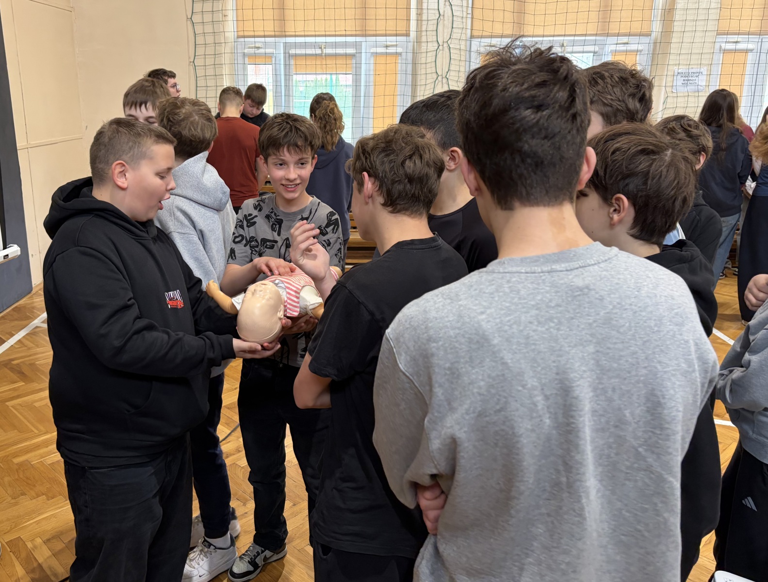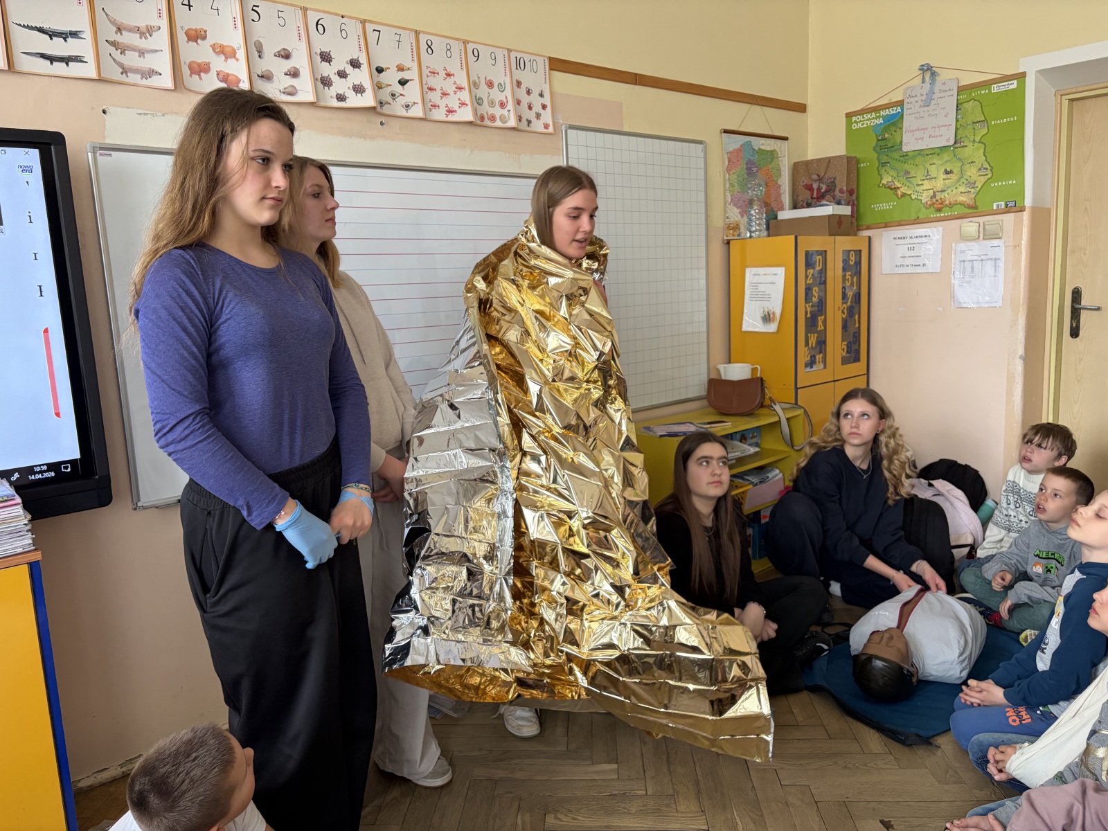 Dodatkowo w tym dniu w holu szkoły pojawiły się gazetki tematyczne poświęcone ratowaniu życia i zdrowia, a podczas zajęć z wychowawcą w klasach 1–7 omawiano zagadnienia związane z udzielaniem pierwszej pomocy w oparciu o otrzymane materiały edukacyjne.