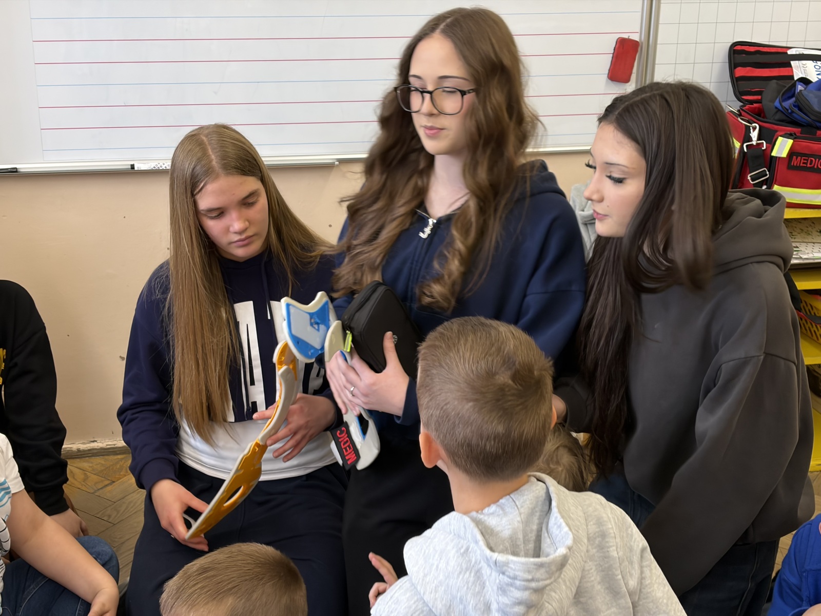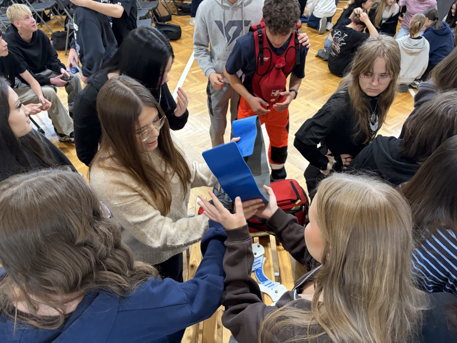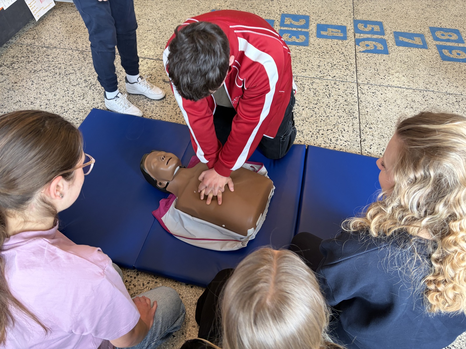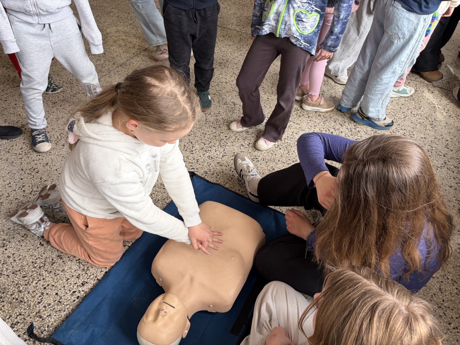 -przygotowania i przeprowadzenia pokazu pierwszej pomocy w holu szkoły dla całej społeczności,